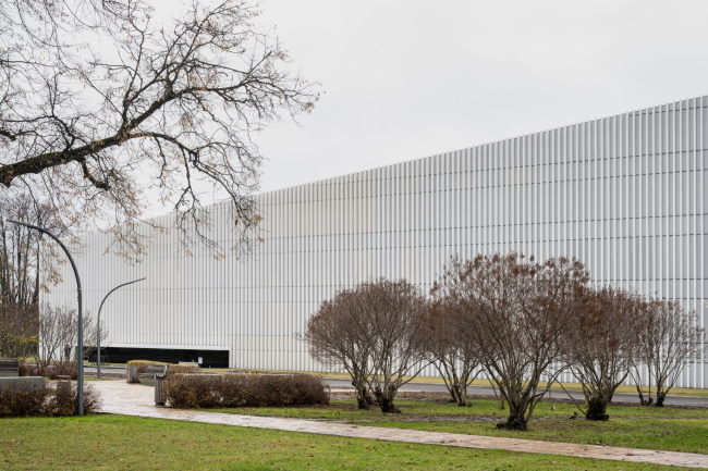 На самом же деле его площадь 25 000 м2, чуть больше, чем конкурсного проекта (20 000 м2). По размеру павильон сопоставим скорее с музейным зданием, да и то сказать, бывают музеи поменьше. Тут можно по-разному сравнивать, но, например, сумма экспозиционных площадей ГТГ в Лаврушинском 12 000 м2.