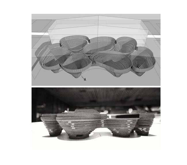 Открытое пространство на уровне земли может использоваться для различных мероприятий; нижний этаж здания занят мастерскими, магазинами, демонстрационными залами, выше находятся выставочные залы, а на кровле устроено еще одно пространство для мероприятий, там же открыто кафе.