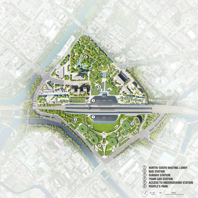 Как можно и нужно сделать иначе, наглядно демонстрирует недавно завершенный MAD вокзал города Цзясин – первый реализованный по проекту этого бюро крупный транспортный объект. Его первое здание возвели еще в 1907, но оно было полностью разрушено в конце 1930-х, во время японо-китайской войны. В середине 1990-х возвели новый вокзал, который довольно быстро перестал отвечать актуальным требованиям: не обладал необходимой (и все растущей) пропускной способностью и создавал собой непреодолимую преграду в ткани города, мешая свободному перемещению.