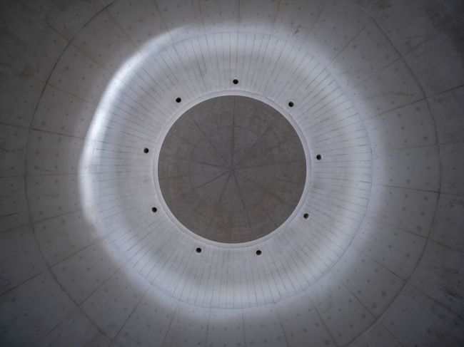 Еще больше на разнообразие ощущений нацелена расположенная под залом «Ротонда для медитации» – пространство в 9 м высотой с рассеянным естественным освещением. Для слушателей здесь предусмотрены широкие сидения из полированного бетона, напоминающие шезлонги. Заглубленная сцена зала служит здесь перекрытиями, имея вид выпуклого бетонного диска. Скрытые оконные проемы можно растворить, впустив внутрь свежий воздух. Звуки музыки из концертного зала поступают сюда через 9 специальных латунных труб.