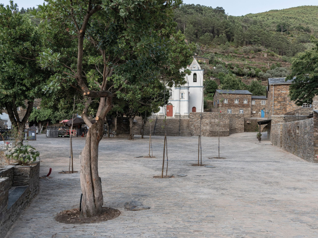 Пиодан расположен на склоне холма, и там практически нет ровных открытых пространств. Единственный подобный участок еще недавно был занят парковкой, но теперь стал городской площадью – местом собраний и общения, «гостиной» для всей деревни. В проекте использованы традиционные материалы и техники строительства (Пиодан известен своими историческими сооружениями из сланца).