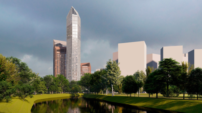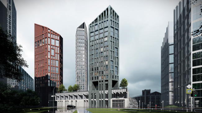 Проект – первый для «Студии 44» опыт работы с высотным строительством в Москве. Одним из пожеланий заказчика было найти нетривиальный образ небоскреба, отличный от других московских проектов.