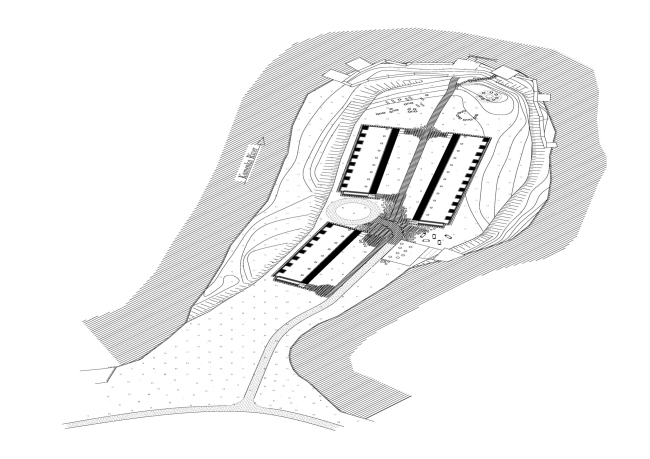 Среди найденных архитекторами Megabudka ключевых для русской идентичности есть и драматизм. С этой точки зрения можно различить еще один мотив. Нет ли в очертаниях технического блока силуэта обезглавленного в советское время и приспособленного под что-то приземленное храма? Нижняя часть здания – это просто фундамент или часть погребенного под культурным слоем этажа? Не намекает ли высота и карниз из деревянных реек на то, что когда-то был второй ярус? В общем, элегическое настроение, свойственное руинам, определенно можно уловить.
