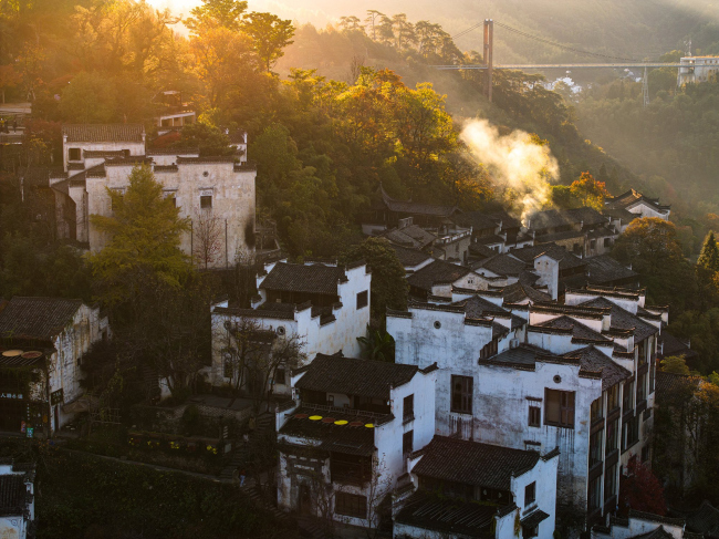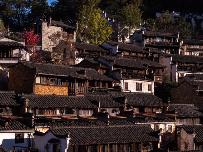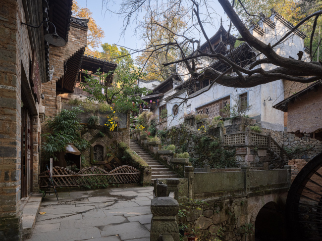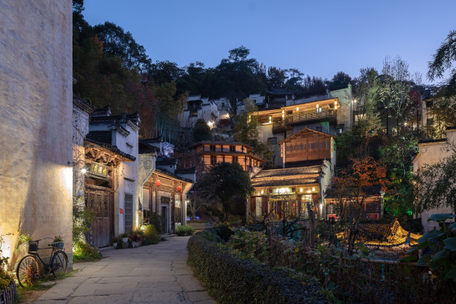 На склоне с перепадом высот около 100 метров разместились небольшие белые домики с черной черепичной крышей, типичные для традиционной (провинции Аньхой). Все они были разобщены и находились в разной степени сохранности. Так что первыми задачами была разработка мастерплана, который собрал бы все воедино, и тщательное исследование состояния построек, чтобы определить: какие удастся сохранить, а какие придется все же сносить. При этом основополагающим оставался принцип минимально необходимого для жизни в современных условия вмешательства не только в архитектуру, но и в традиционный жизненный уклад деревни. Безопасности, организации ливнестоков и совершенствованию инженерных систем также уделили большое внимание.