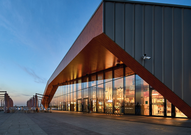 Среди них – оригинальные здания «Информационного центра» и «Фудмолла» сложной геометрической формы, при строительстве которых применяется кровельная и фасадная система Риверклак.
