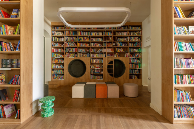 Архитекторы предусмотрели зонирование для детей разного возраста. Для малышей сделали невысокие стеллажи c особой подборкой книг, оставляя возможность поиграть на полу. В залы для подростков добавили комфортные места для чтения: пуфы и диванчики, «гнезда» для тех, кто предпочитает уединение, и удобные стулья со столиками для учебы и работы.
