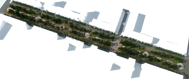 Описание предоставлено архитекторами Бульвар в южной части проспекта Ленина – это утопающий в зелени променад в самом сердце города, одно из любимых мест прогулок и отдыха горожан. Поэтому концепция не предусматривала реструктуризацию градостроительной функции данного участка. Переосмыслению подвергся сценарий взаимодействия людских и транспортных потоков.