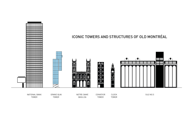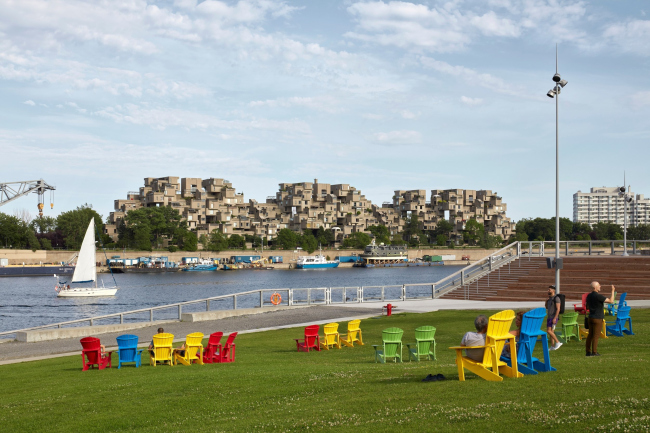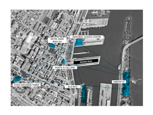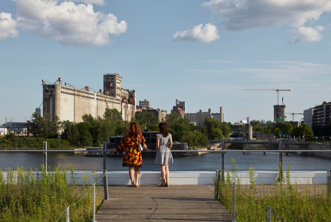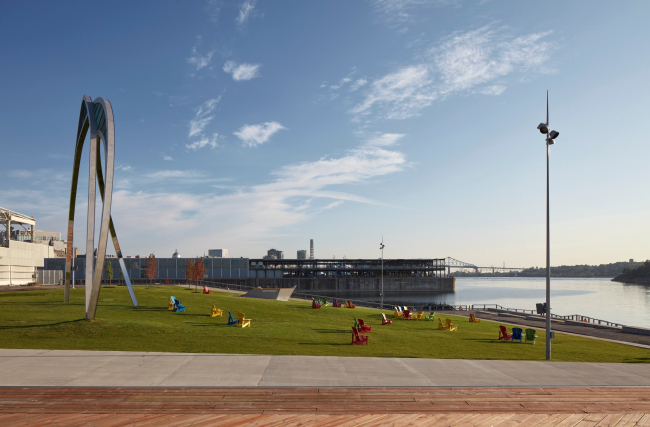 Место это требовало особого внимания, потому что действительно стало квинтэссенцией всего «монреальского»: рядом или чуть в отдалении расположены красивейшая река Святого Лаврентия, знаменитый жилой комплекс Habitat’67, гигантский элеватор № 5, построенный тоже в начале XX века, собор Монреальской Богоматери. От пирса открываются виды одновременно на небоскребы делового центра, и на гору Мон-Руаяль.