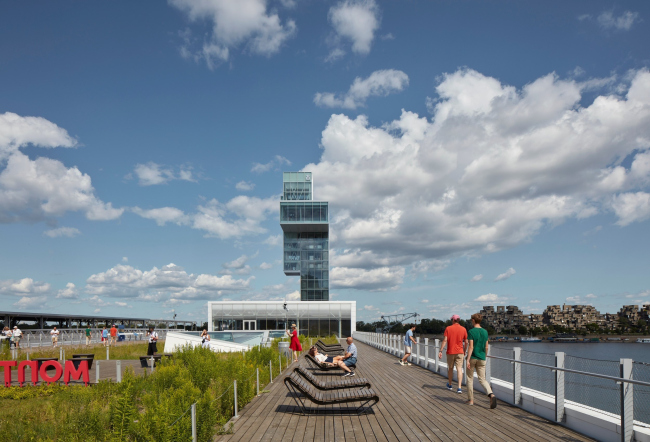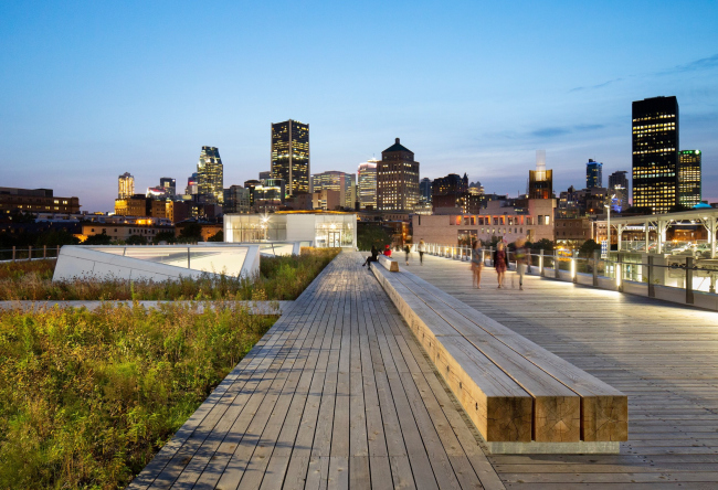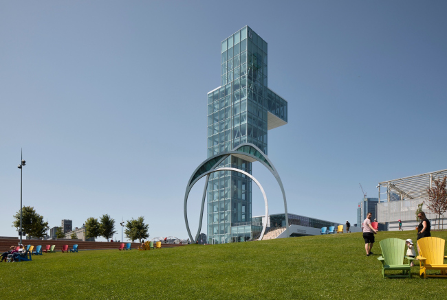 Смотровая башня, спроектированная для Старого порта Монреаля бюро Provencher_Roy, и общественная зеленая зона вокруг нее от ландшафтного бюро NIPPAYSAGE вобрали в себя множество элементов местной идентичности.