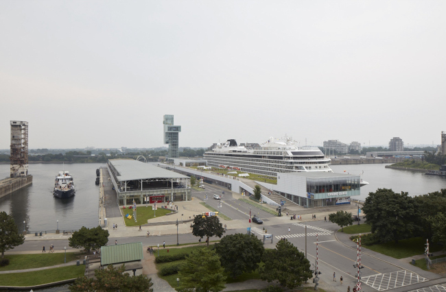Конкурс на реконструкцию пирса бюро Provencher_Roy выиграло еще в 2013 в содружестве с ландшафтными архитекторами NIPPAYSAGE. К 2018 был модернизирован пассажирский терминал Grand Quai, который получил комфортный зеленый променад на крыше, засаженный специально подобранными растениями 20 000 сортов. Его помещения дополнительно освещены большими световыми фонарями и решены полностью в белом цвете. Также была изменена схема движения транспорта и пешеходов, а в ангароподобном сооружении устроили парковку. На последнем этапе работ возвели смотровую башню и создали открытую общественную зону на самом конце пирса. Именно они встречают подходящие круизные лайнеры и позволяют составить первое впечатление от города, почувствовать его.