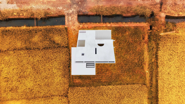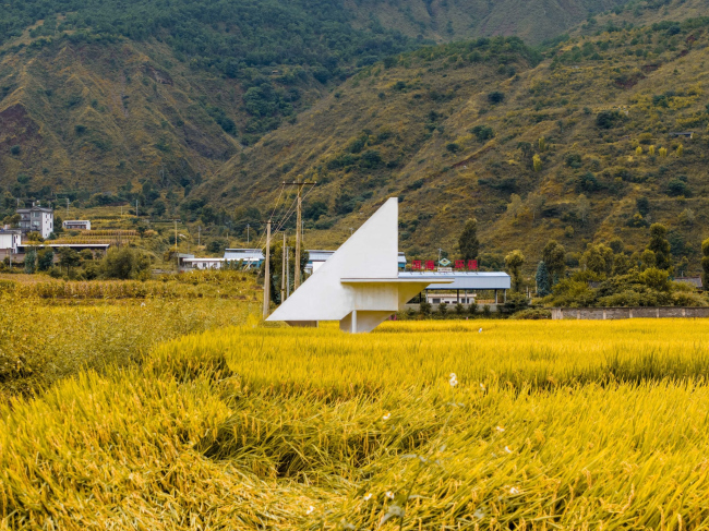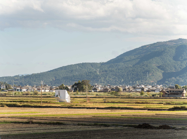 Белый цвет ее стен напоминает о названии живущего здесь народа бай («белые [люди]»): дело происходит в Дали-Байском автономном округе. Благодаря своему цвету станция выступает нейтральным экраном для переменчивой погоды. Провинция Юньнань граничит с Вьетнамом, здесь проходит тропик Рака, и пусть в горном уезде Эръюань климат все же субтропический, а не тропический, жарким летом здесь ливни чередуются с изморосью, а солнце быстро закрывают облака. Яркие тени или свет изменяют облик сооружения, как и смена времени суток, но работающие в полях жители смогут ориентироваться по станции и на рассвете, и в сумерках.«Бетонный павильон» – насосная станция в поляхФото © Zhuo Hongduo