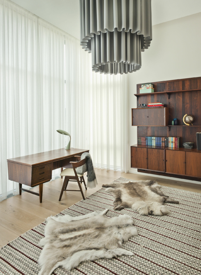 Мебельный проект «Питона» – тонкая и длительная работа по их подбору. Коллекция собиралась не по каталогам именитых брендов, а в галереях и антикварных лавках европейских столиц. Часть предметов мебели, например, Г-образный кухонный остров или некоторые светильники, Арсений Леонович и команда PANACOM разрабатывали специально для этого проекта.