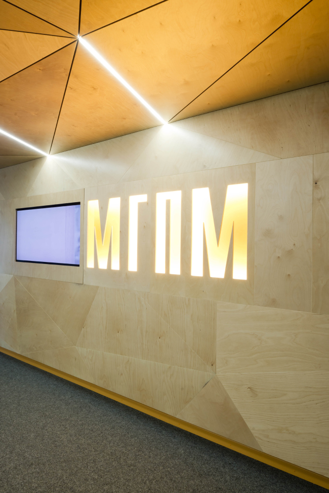 The interior design of the reception area of MGPM. Fragment © Totan Kuzembaev Architectural Studio