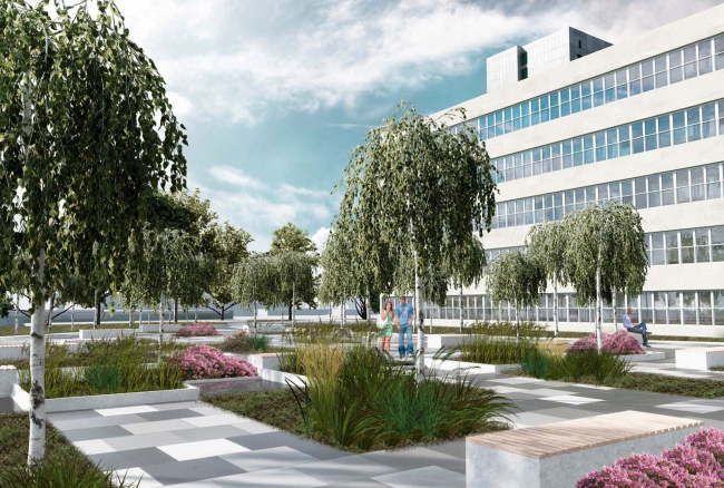 По словам Сергея Кузнецова, прилегающую территорию благоустроят: на площади более 900 кв.м сделают цветники, зоны отдыха, высадят крупномерные деревья и кустарники. Среди них клены, березы, сосны и пихты, можжевельник, кизильник, луговые травы – свыше 10 видов растений. Также у студентов появится площадка с тренажерами и спортивный сектор для игр в футбол, баскетбол и волейбол. Это будут современные пространства с ярким дизайном и качественными материалами. Кроме того, предусмотрена открытая автостоянка.