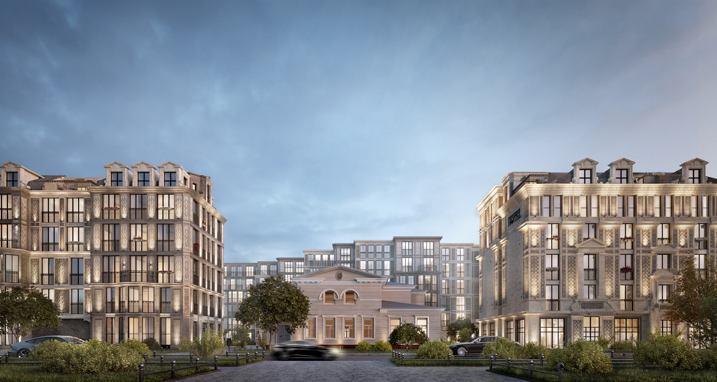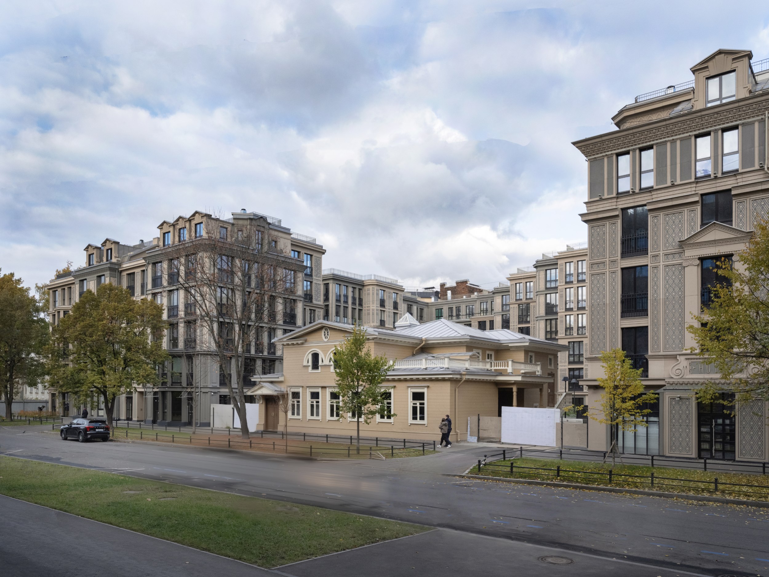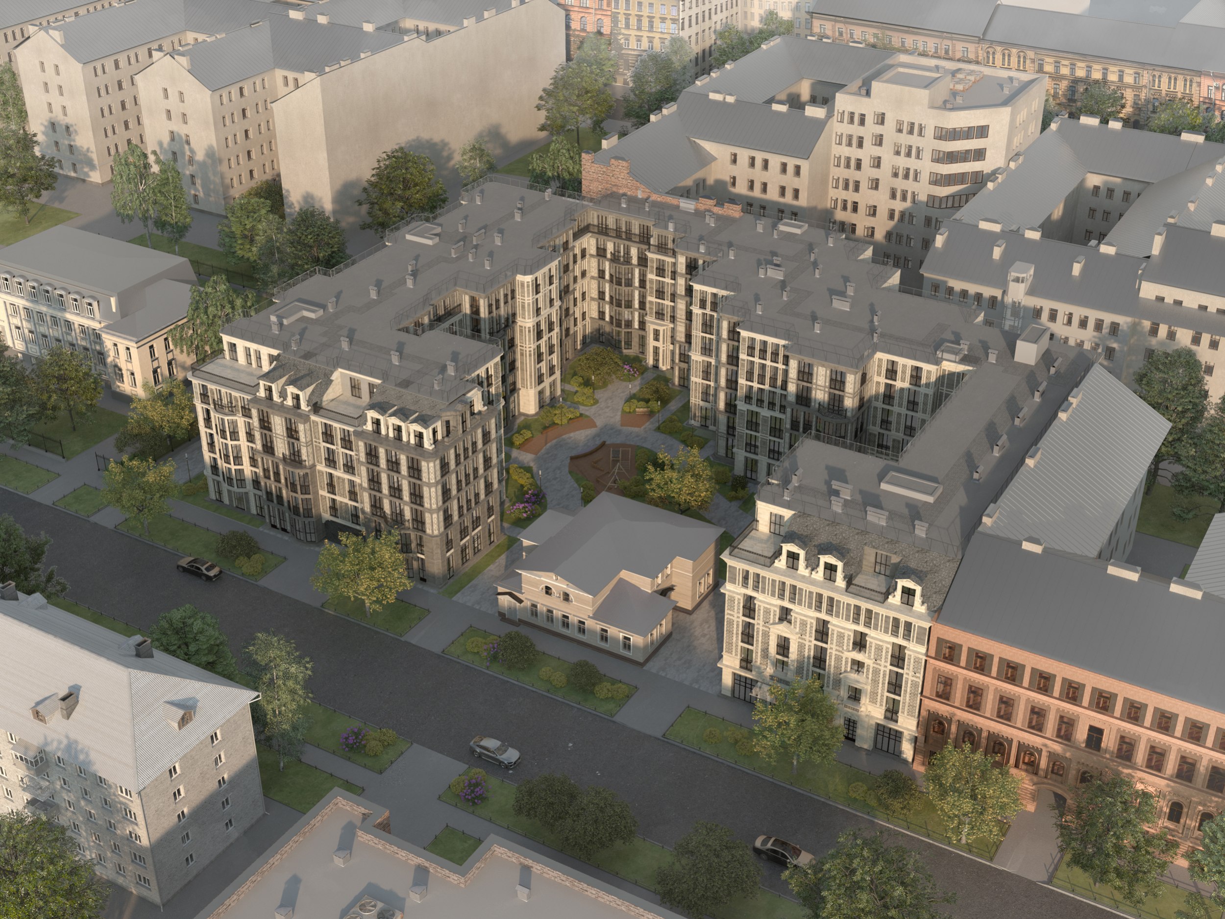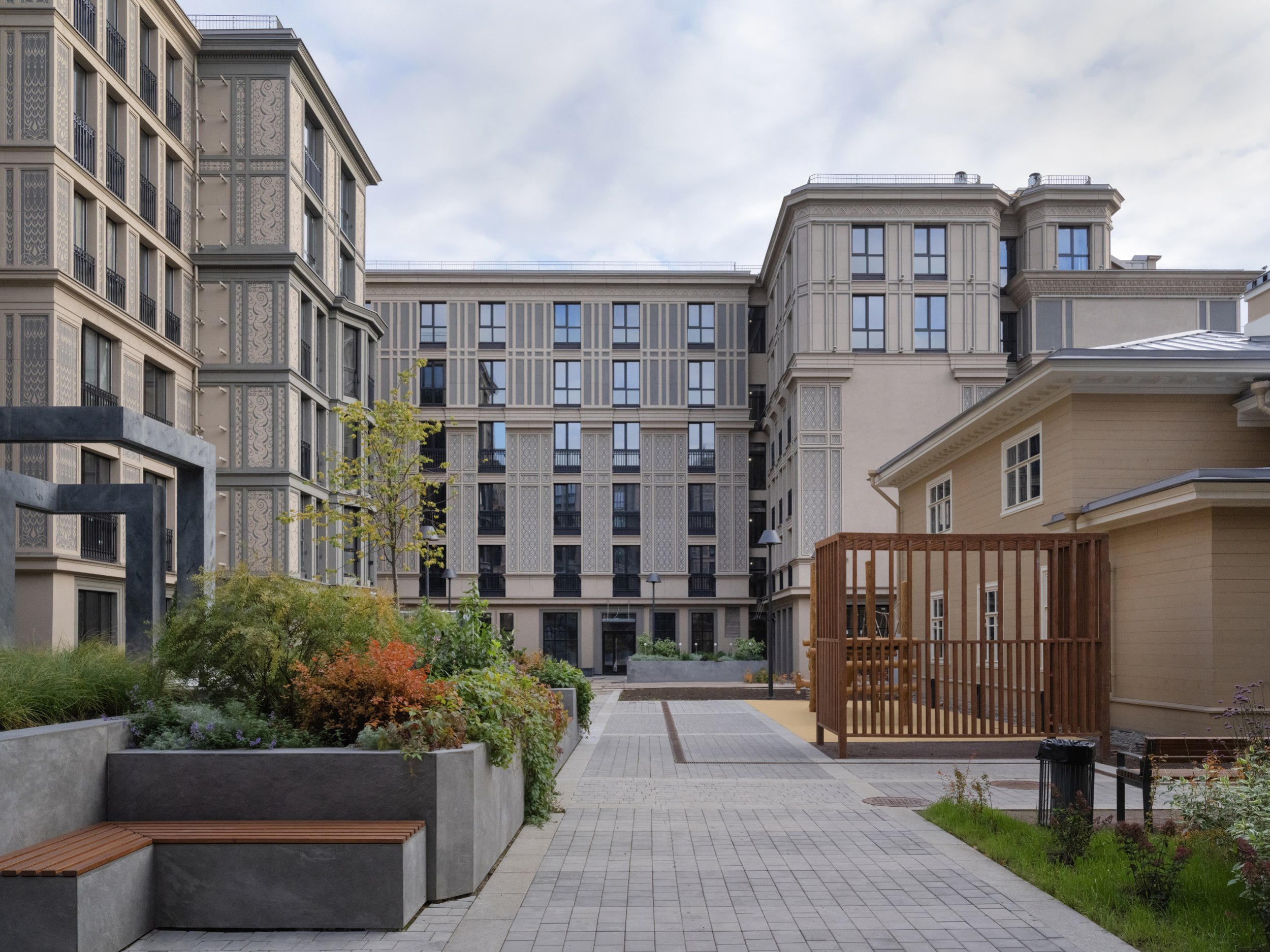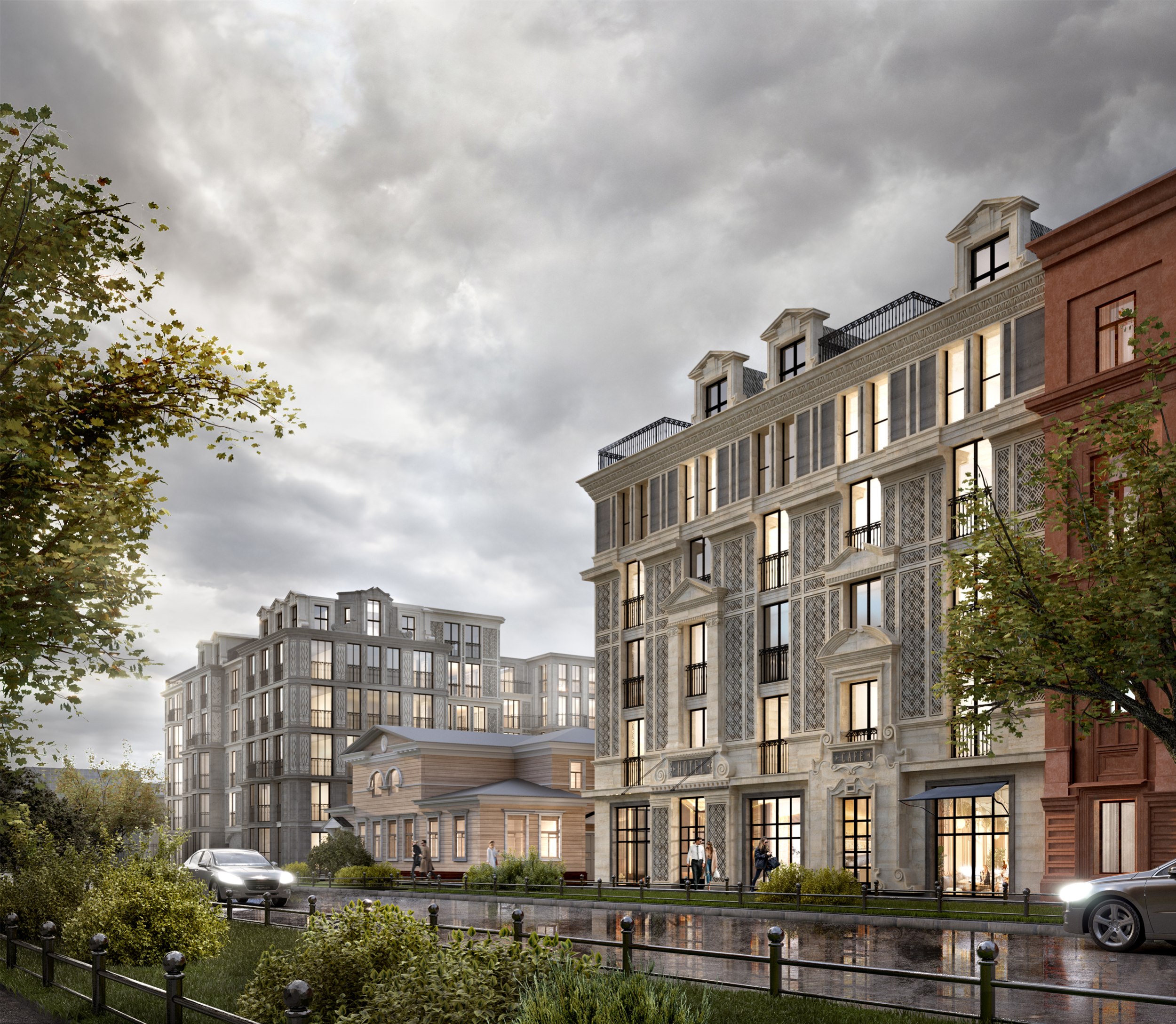 Вместе с историческим деревянным особняком новые здания, за счёт работы с масштабом и композицией, сформируют комфортную среду озеленённого и благоустроенного двора, закрытого от машин. Из пространства двора предполагаются входы, как в общие парадные, так и отдельный доступ в двухэтажные квартиры на первых этажах.