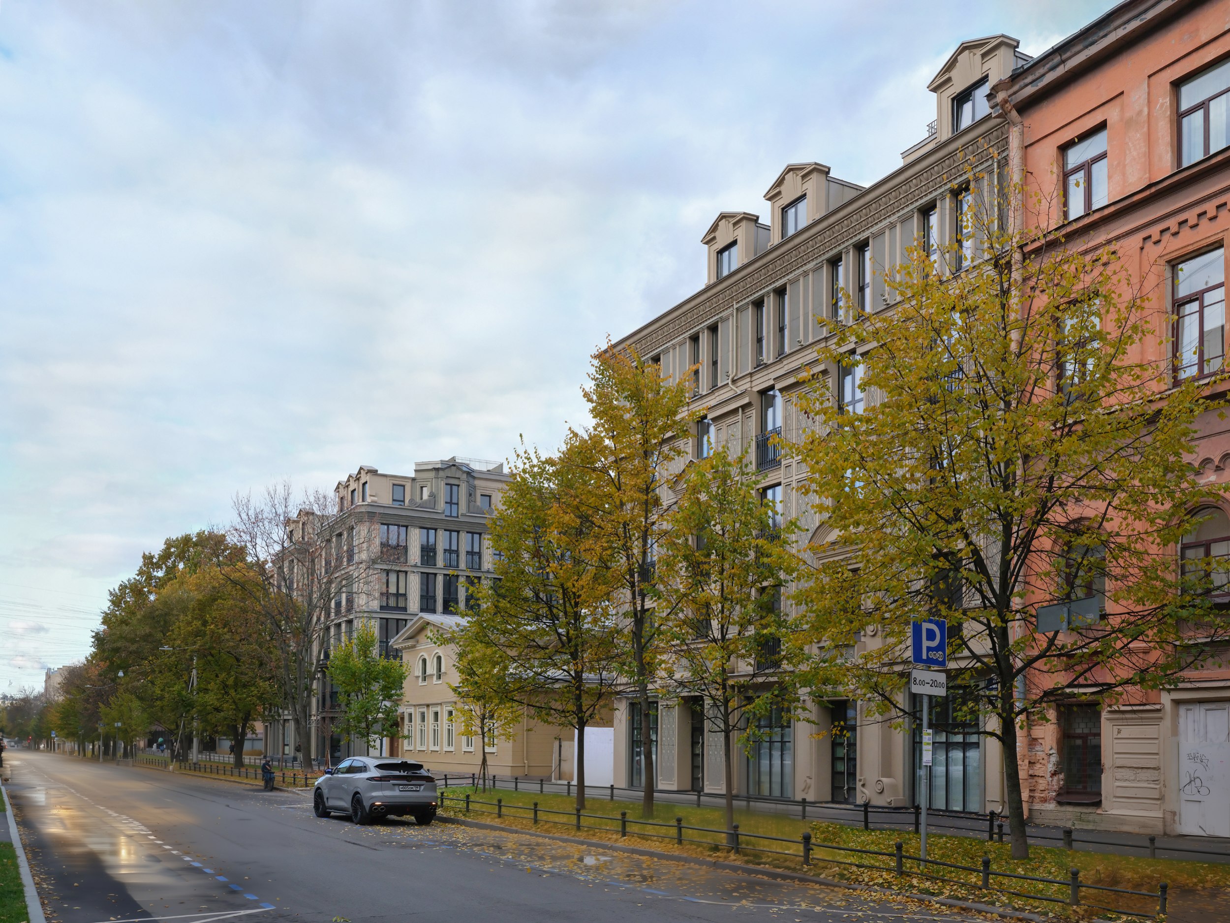 Второй наш проект в исторической среде Васильевского острова предполагается к реализации на 12-й линии. Участок, ныне почти свободный от застройки, ранее представлял собой промышленный комплекс фармацевтической фабрики, снесенной в первой половине 2000-х годов. Здесь сохранился объект культурного наследия – деревянный ампирный особняк Э.Э.Бремме, выходящий на красную линию улицы, практически по центру участка.