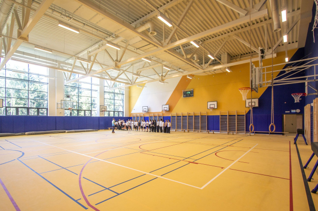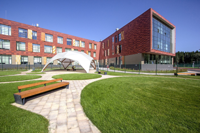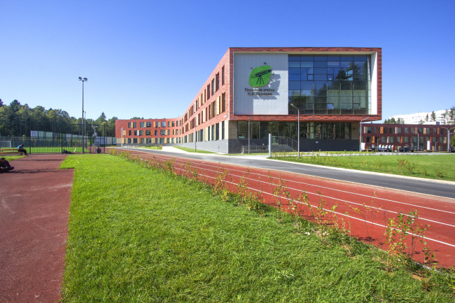 Комплекс гимназии расположен в парковой территории, недалеко от центра г. Троицка. Важнейшей задачей было создать сомасштабное детям пространство, несмотря на огромную вместимость комплекса. Приняв как данность размеры школы и ее местоположение, мы сделали все возможное, чтобы максимально бережно и корректно расположить объем на участке, с уважением к природе и к окружению.