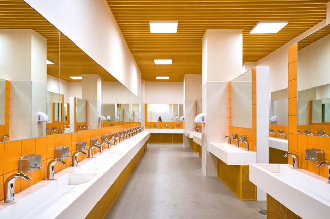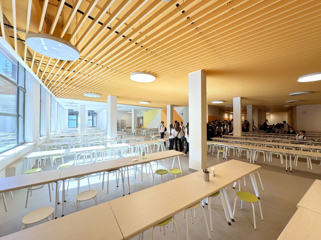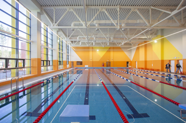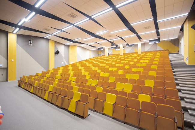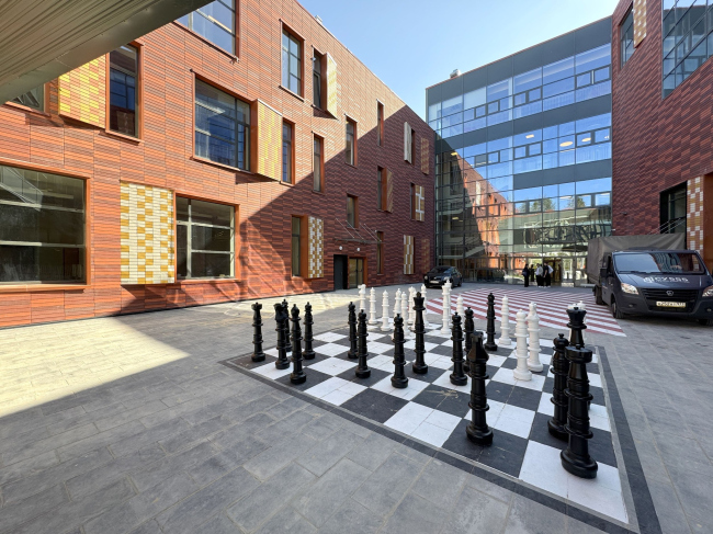 План здания – результат долгой и кропотливой работы с целым рядом ограничений, которые предъявляются к образовательным учреждениям. Форма плана, похожая на «звездочку», с общественным ядром и расходящимися от него лучами учебных корпусов, позволила не только вписаться в строгие ограничения, но и удобно расположить внутри все функции.