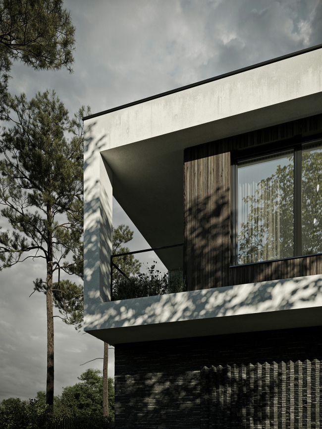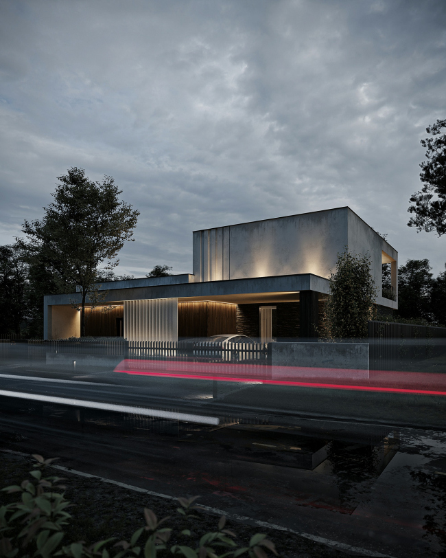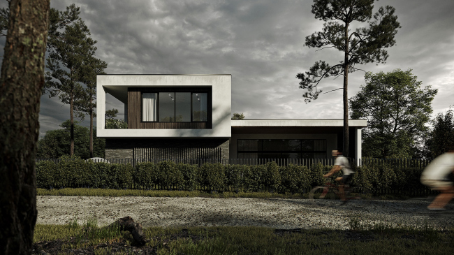 Владельцы ценят конфиденциальность, что отражено в архитектурном решении. Баланс между открытым пространством и уединением создает остекление второго этажа, которое расположено выше основного объема здания.