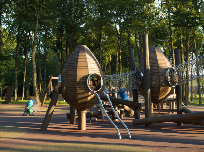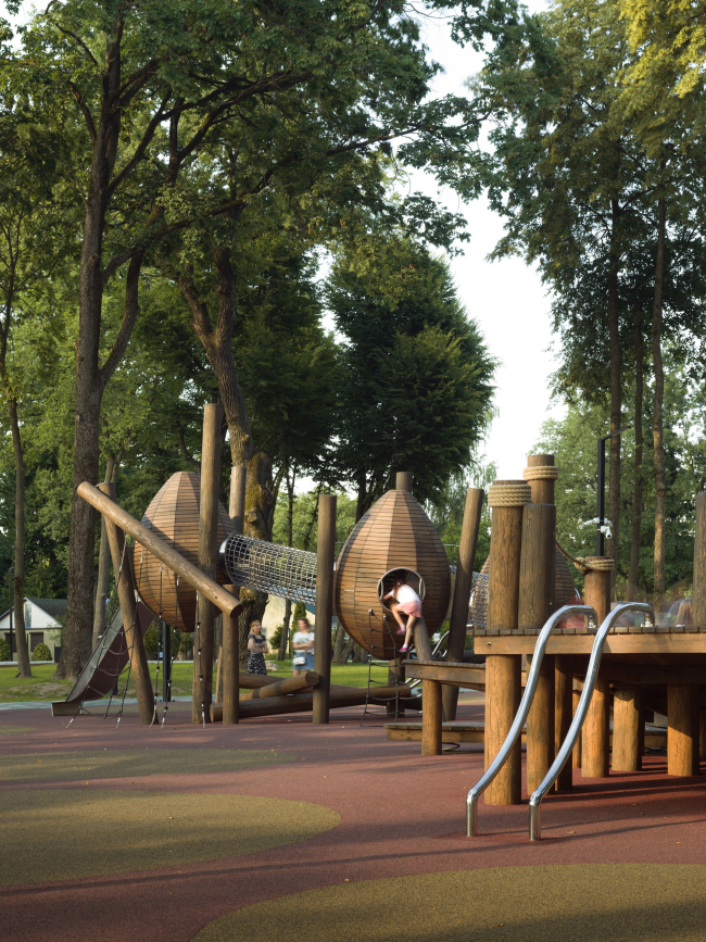 Детская площадка приглашает маленьких гостей окунуться в мир фантастических существ – то ли космических кораблей, то ли инопланетян, которые когда-то приземлились в парке и решили не улетать обратно.