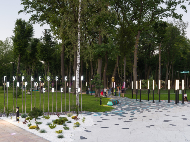 В проекте Гурьевского городского парка продолжается тема взаимодействия человека и среды через разные способы восприятия, начало которой положено в Парке сенситивного развития. Основной темой развития проекта на данной территории предлагается свет, Гурьевский парк света в темное время суток может стать новым знаковым удивительным пространством, отличающимся от остальных общественных пространств города. Световая концепция подчеркивает планировочную и образную дихотомию парка: в «структурной» части парка предлагается яркое функциональное освещение и наполнение световыми инсталляциями.