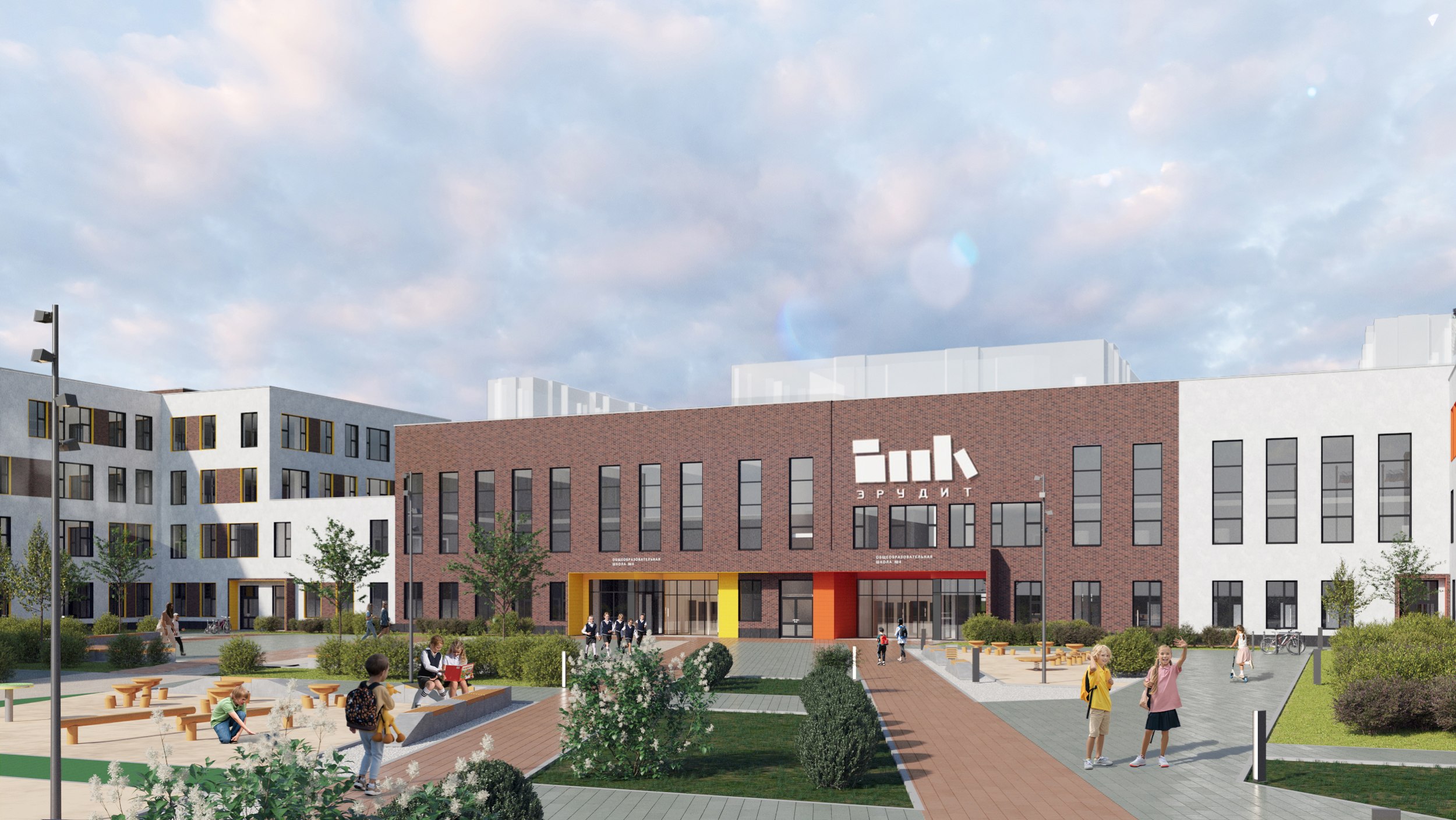 На территории школы планируется выполнить комплексное благоустройство и организовать спортивное ядро с игровыми и баскетбольной площадками, беговой дорожкой и зоной спокойного отдыха.