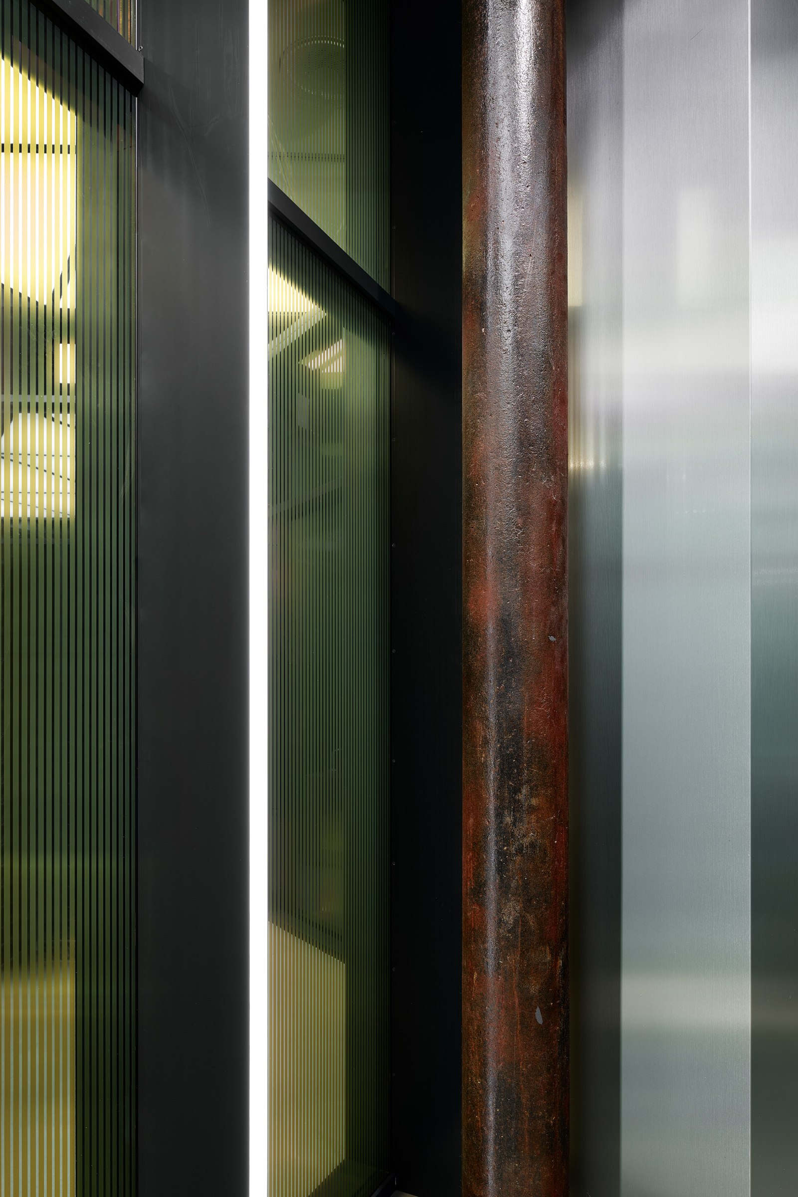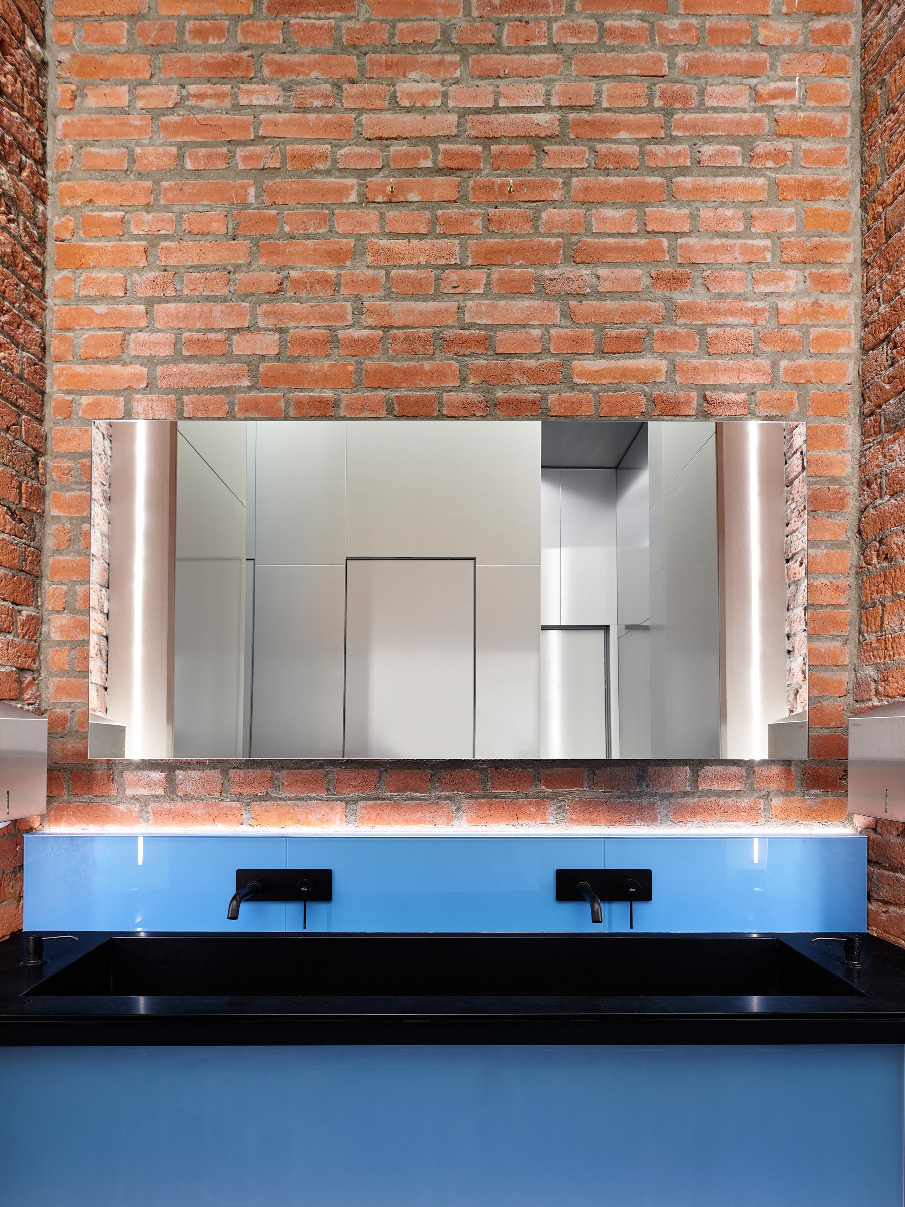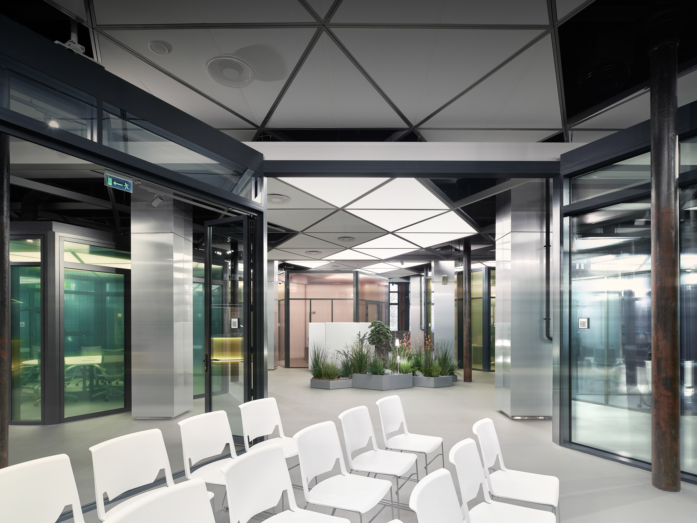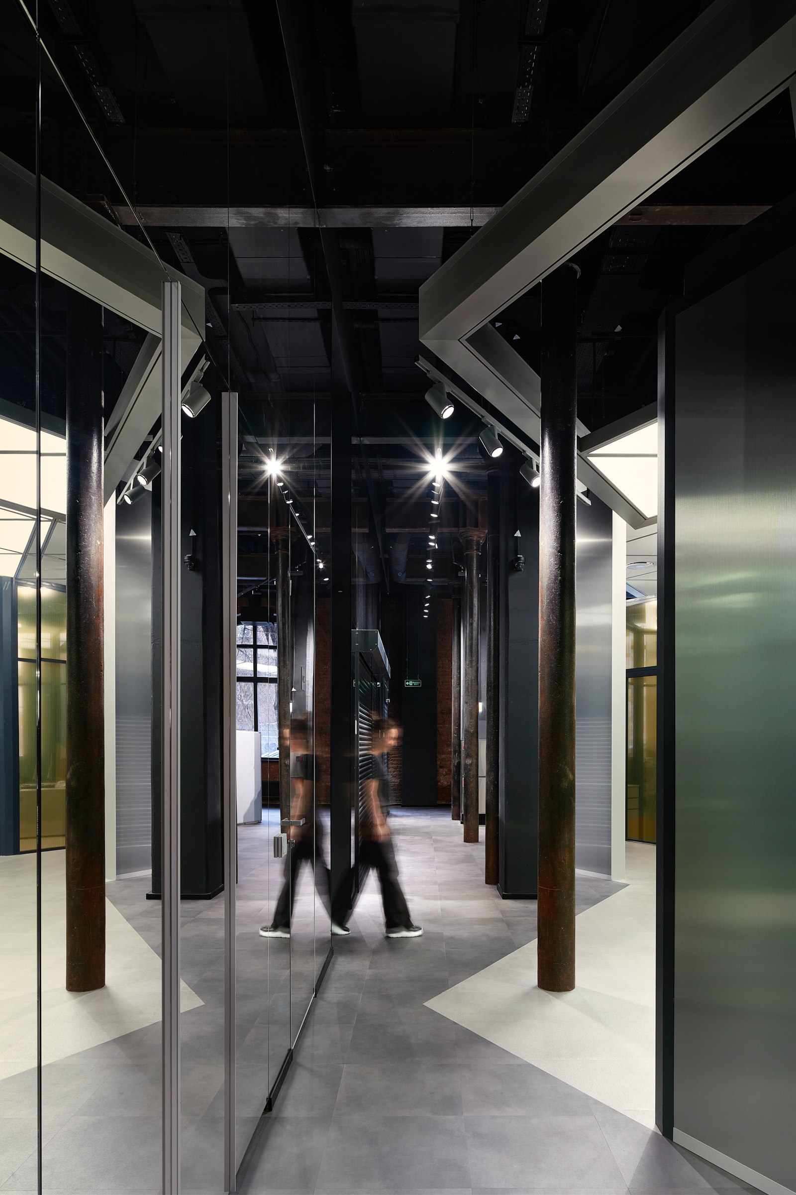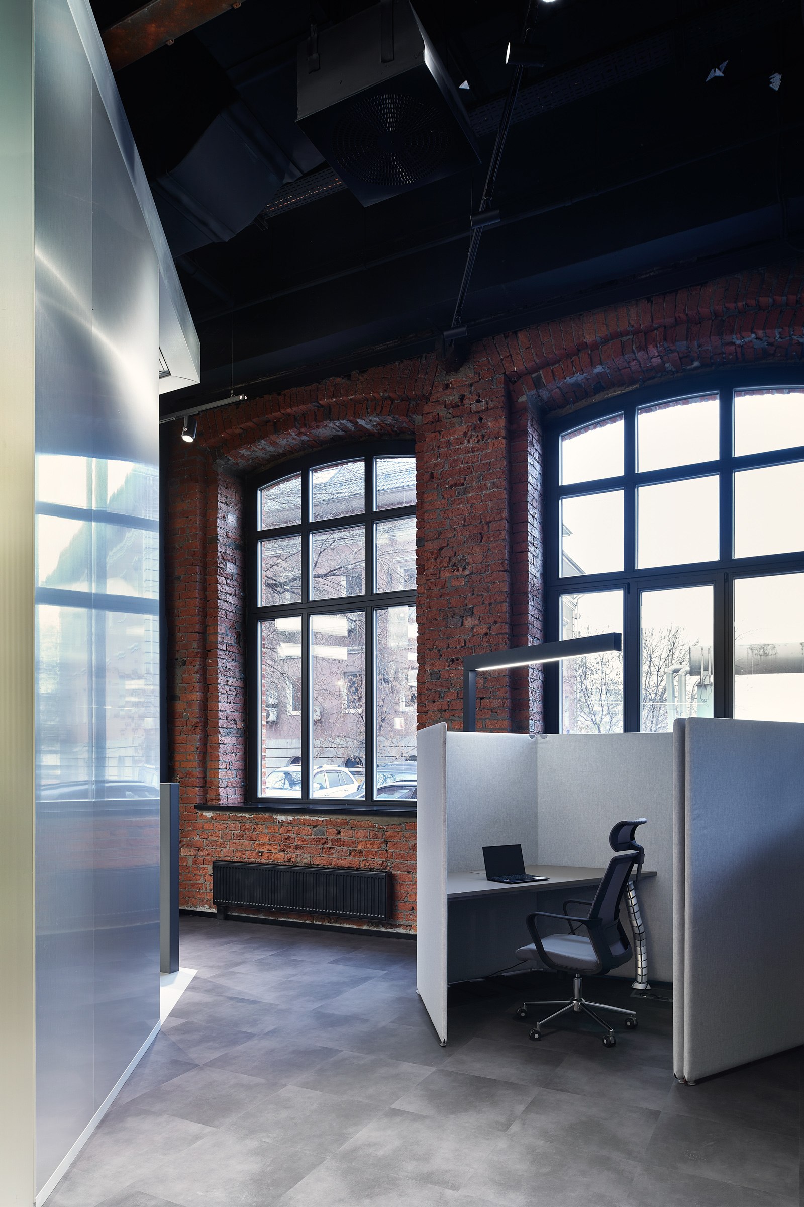 Гексагональная структура стала универсальным планировочным и пространственным решением. Оно структурировало образ «алюминиевого леса» и оживило изначально темное и статичное кирпичное пространство.