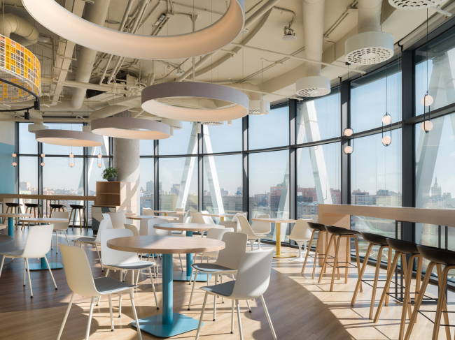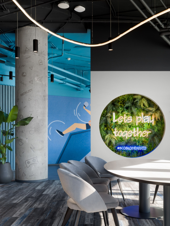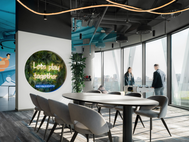 Следуя идеологии динамичного и современного характера ведения бизнеса, архитекторы MAD Architects внедрили в офисные пространства яркие цветовые акценты и прогрессивные решения, характерные для IT-компаний. Вместе с этим интерьер удалось сохранить уютным и комфортным для сосредоточенной работы. Кроме того одна из фундаментальных основ концепции – создание здорового, безопасного и экологичного пространства.