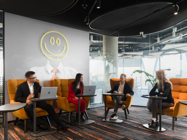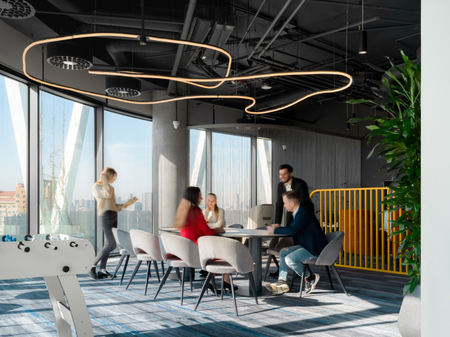 Разработанная концепция интерьеров нового офиса отражает динамичность изменений, которые происходят в компании и одновременно подчеркивает, что это среда для молодых и ярких специалистов.