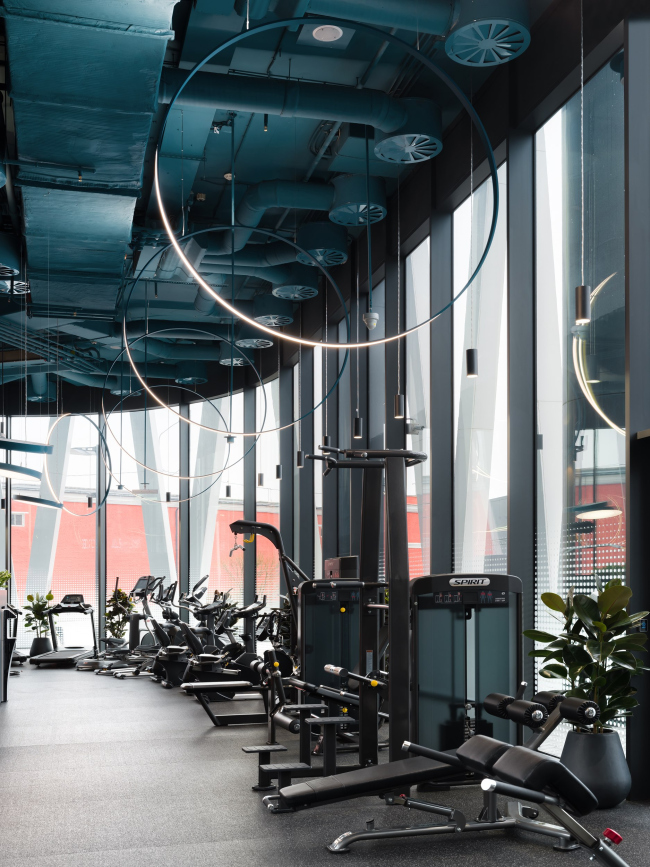Комнаты отдыха и игровые зоны оборудованы массажными креслами, игровыми приставками, кинотеатром, зоной бук-кроссинга, кикером, турником, брусьями, настольным теннисом, аэрохоккеем и мини-гольфом. Также внутри оборудованы тренажерный и фитнес-залы, в которых занятие ведут опытные тренеры. Запись на тренировочные программы выполняется через специально подготовленное приложение для мобильного устройства.