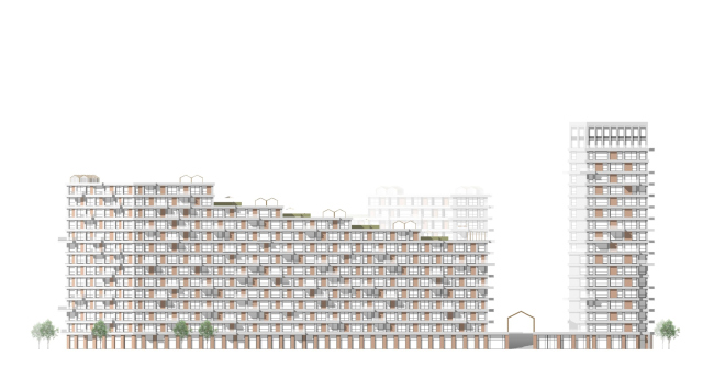 В концепции дома для петербургского Купчино бюро TOBE Architects предлагает несколько приемов, способных оживить спальный район: ступенчатый силуэт, общественные террасы с теплицами и фасады с характерными деталями.