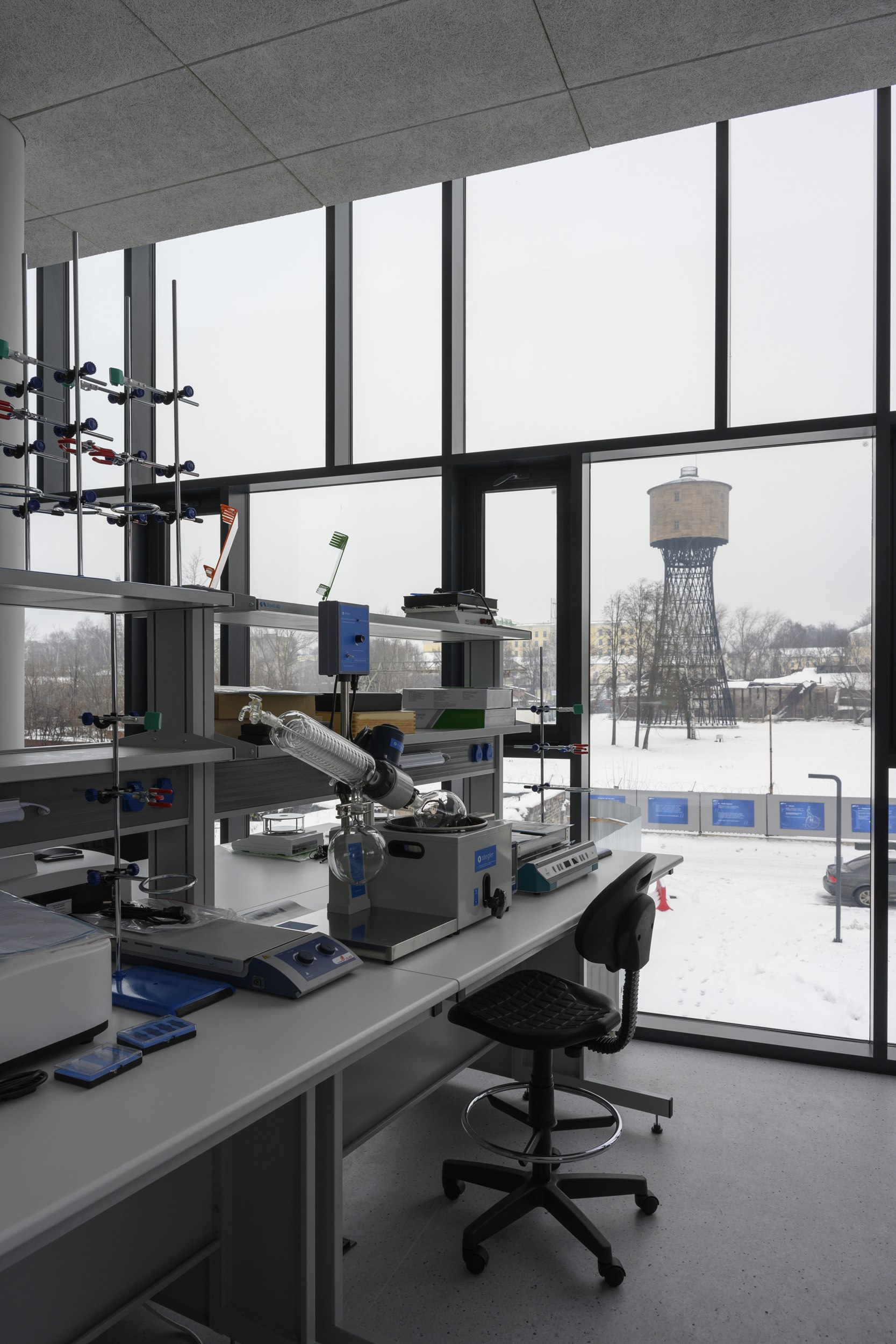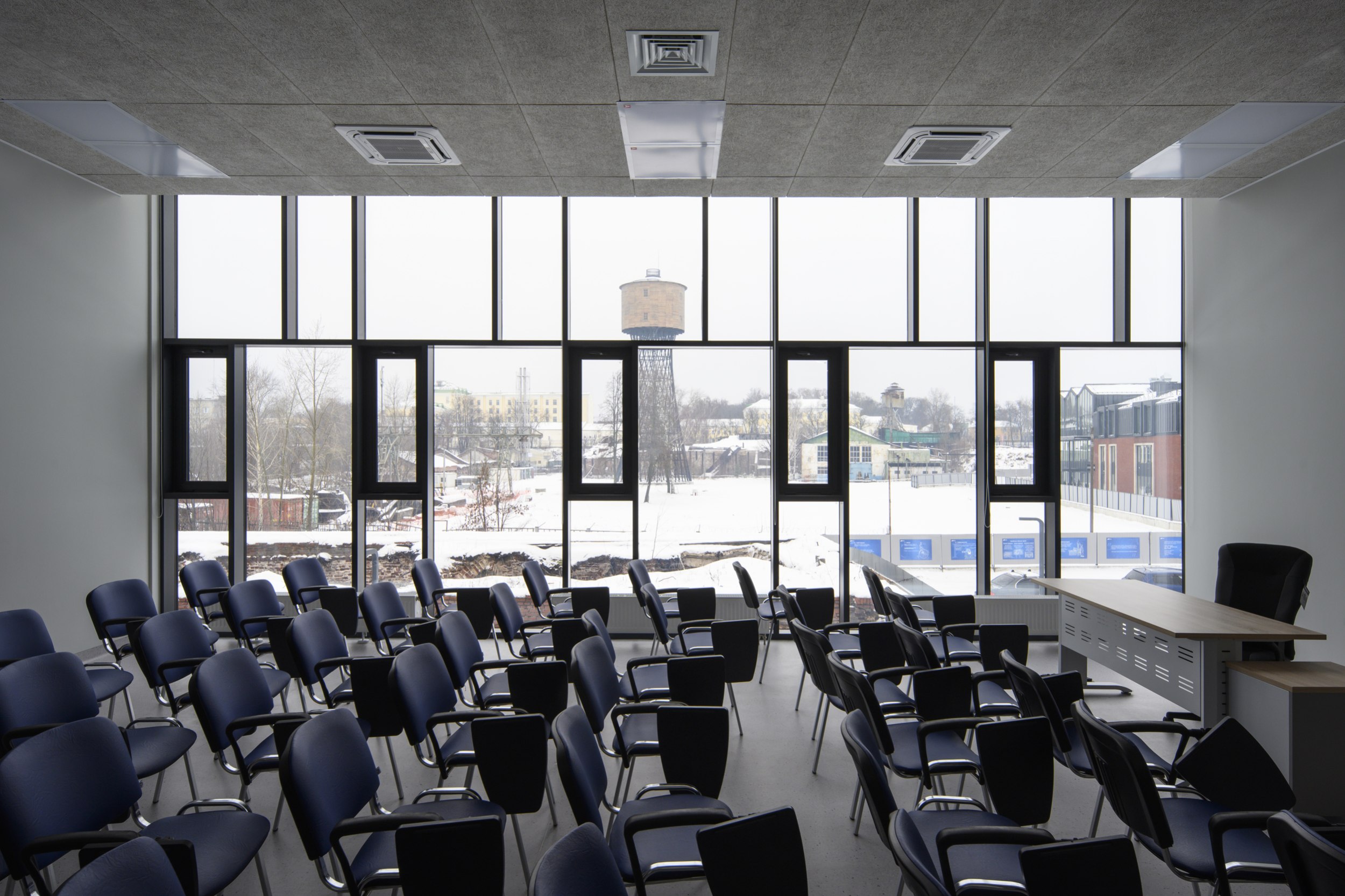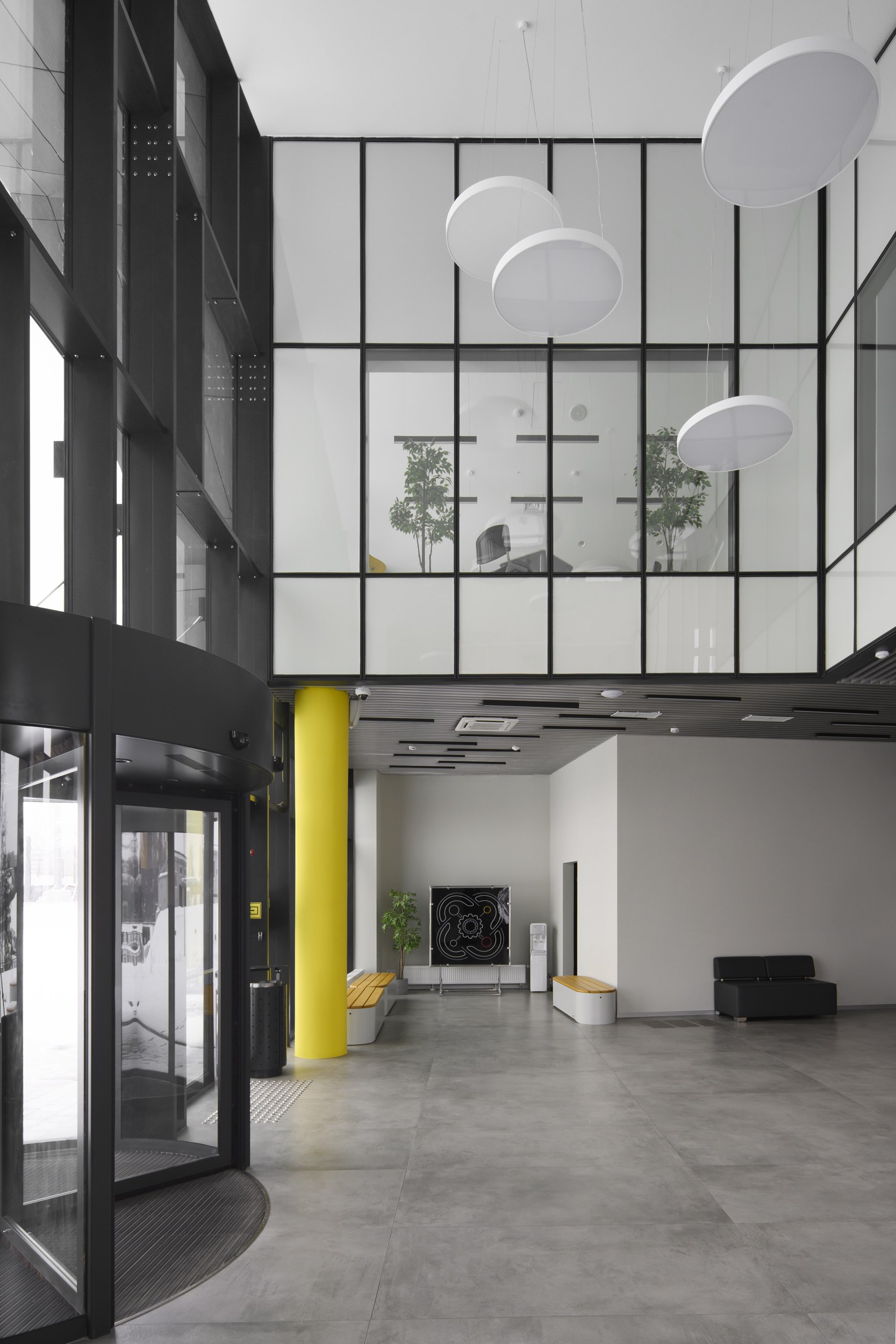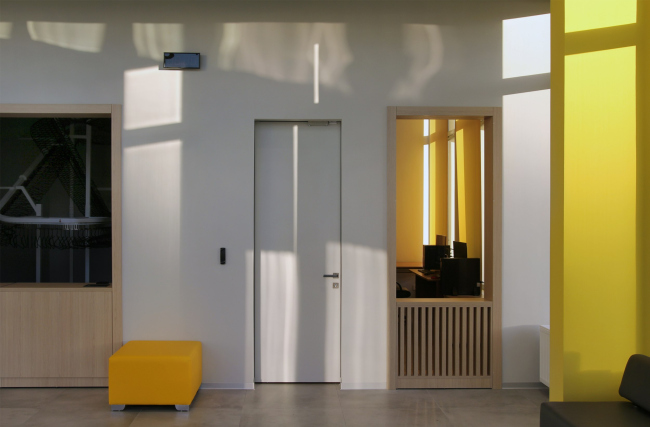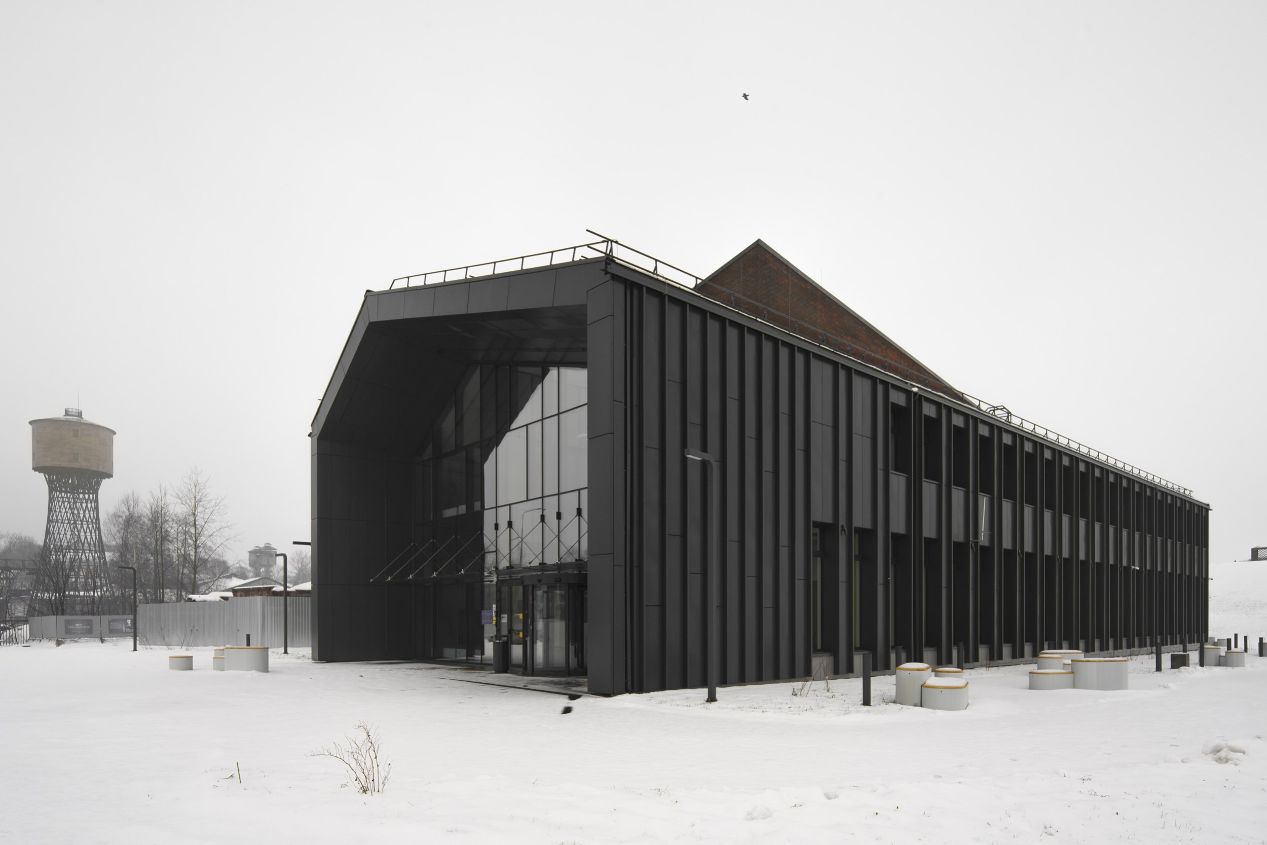 Компактное кирпично-металлическое здание на территории растущего в Выксе «Шухов-парка», кажется, впитывает в себя солнечный свет, преобразует в желтые акценты внутри и вечером «отдает» теплотой золотистого света из окон. Серьезно, очень симпатичное получилось здание: и материальное, и легкое, причем легкость внутри, материальность снаружи. Форма в нем выстроена от функции – лаконично, но не просто. Изучаем.