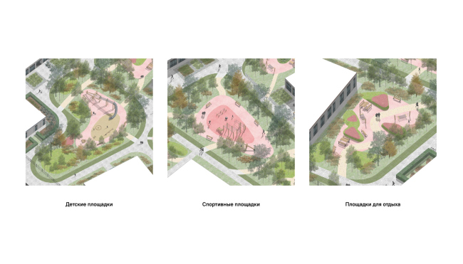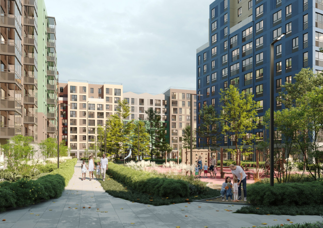 Проект был вдохновлен самой природой, олицетворяя слияние архитектуры с окружающей средой. Дворы жилых домов имеют между собой связь, которая создает единое прогулочное пространство. Внутри дворов располагаются односекционные корпуса (башни), которые повернуты друг от друга для того избежать попаданий окна в окна.