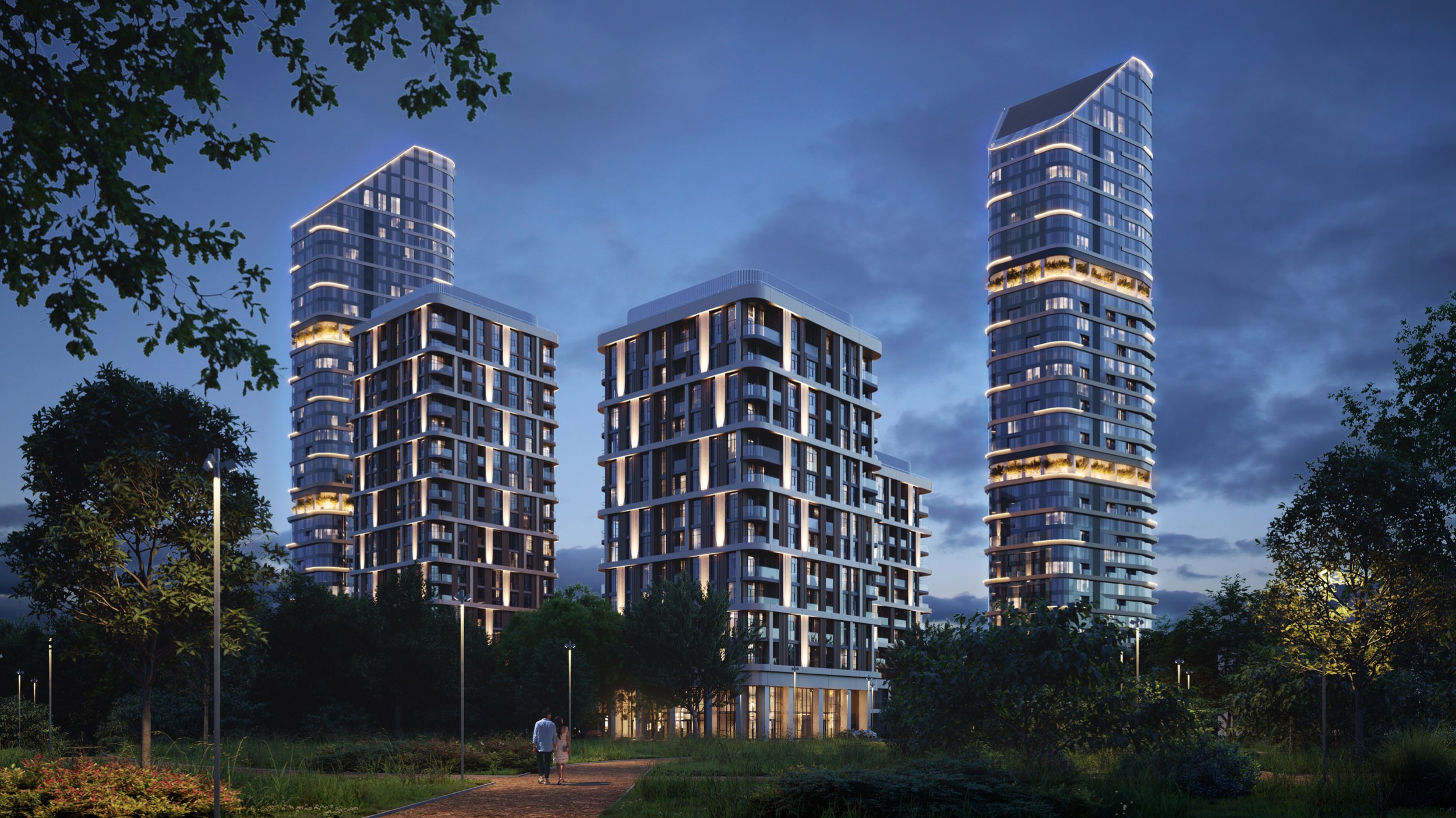 «Образы высоток со скругленными фасадами объединяются в яркий силуэт. Продолжает тему реки волнообразная структура многофункционального комплекса, который появится на территории квартала. Архитектурную форму и объем зданий подчеркнет концепция дизайнерского освещения, которое в вечернее время позволяет сохранить запоминающийся силуэт как всего квартала, так и его отдельных доминант», ‒ пояснил главный архитектор UNK architects Дмитрий Иконников.