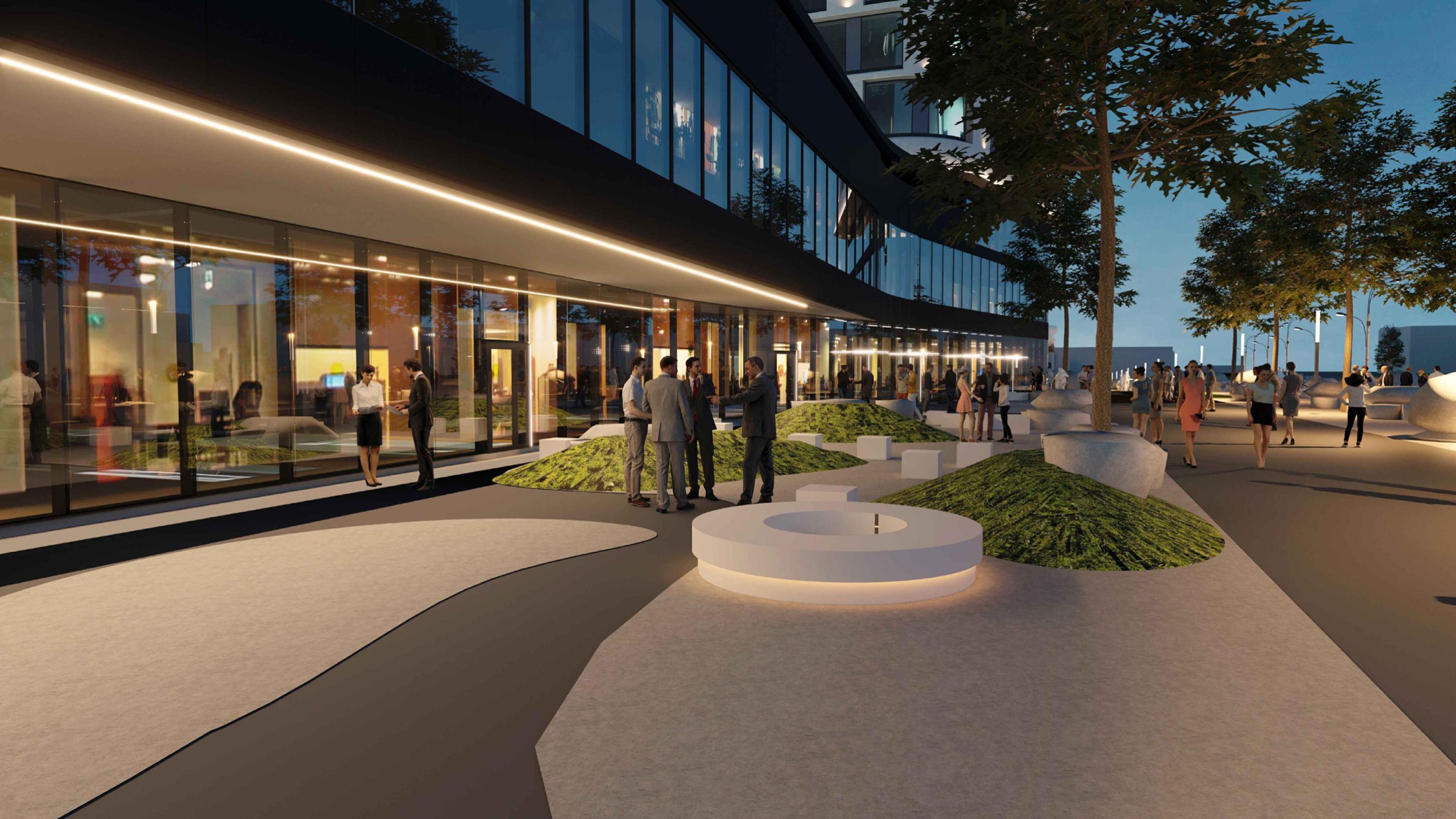 На первых этажах комплекса на площади почти 8 000 кв. м. разместится разнообразная инфраструктура, включающая в себя коммерческие и офисные пространства.