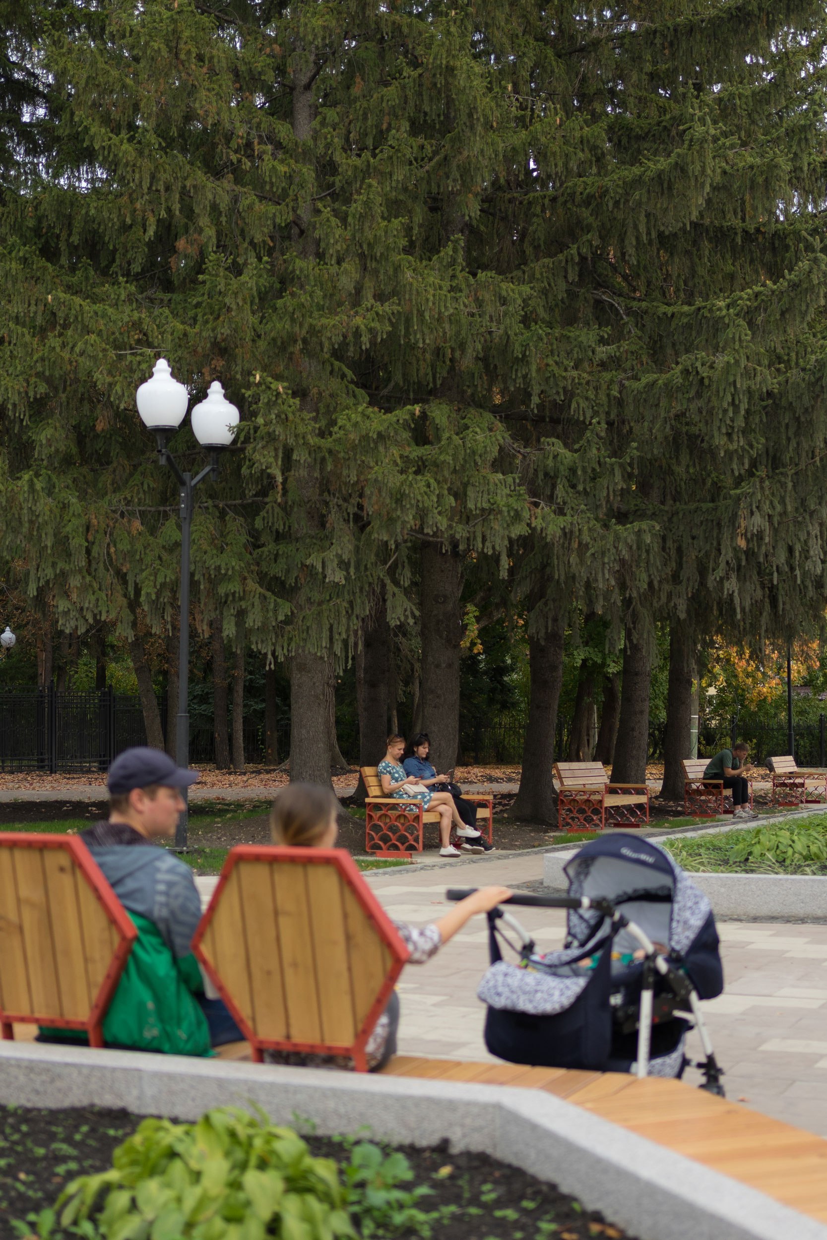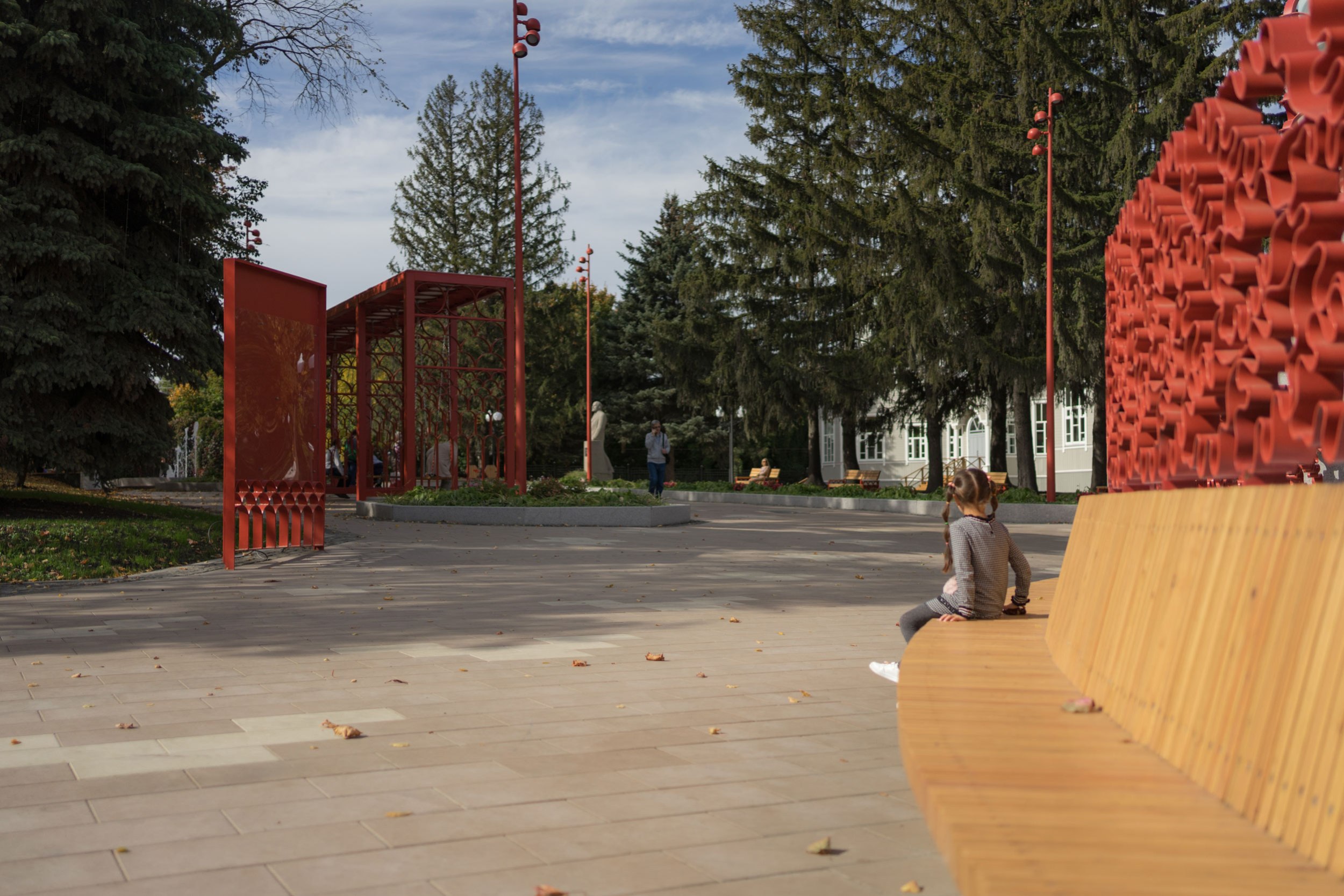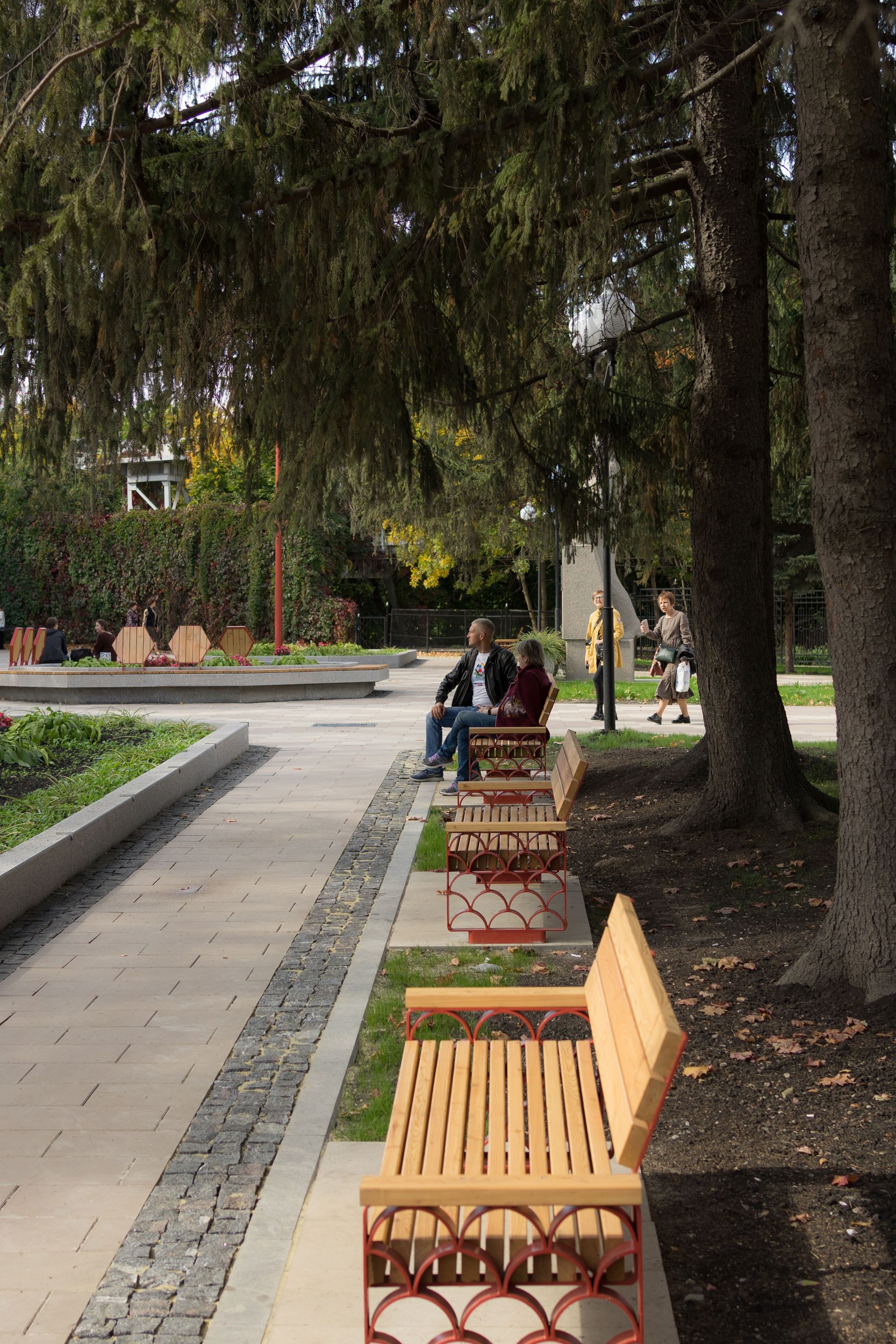 После реконструкции площадь стала самодостаточным местом отдыха, привлекающим новых посетителей парка. Забавно, что с наклонных элементов амфитеатра дети начали скатываться, как с горки.