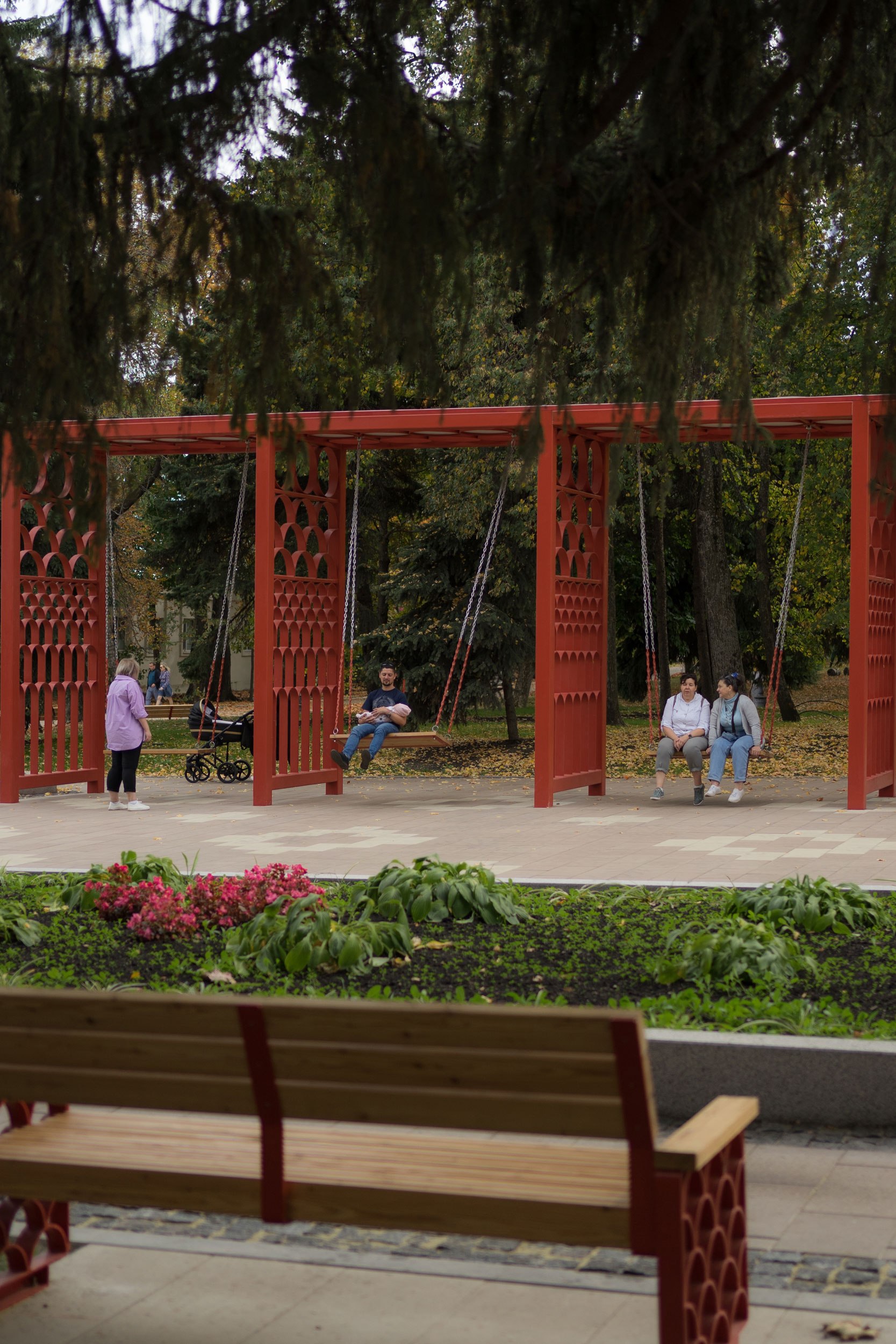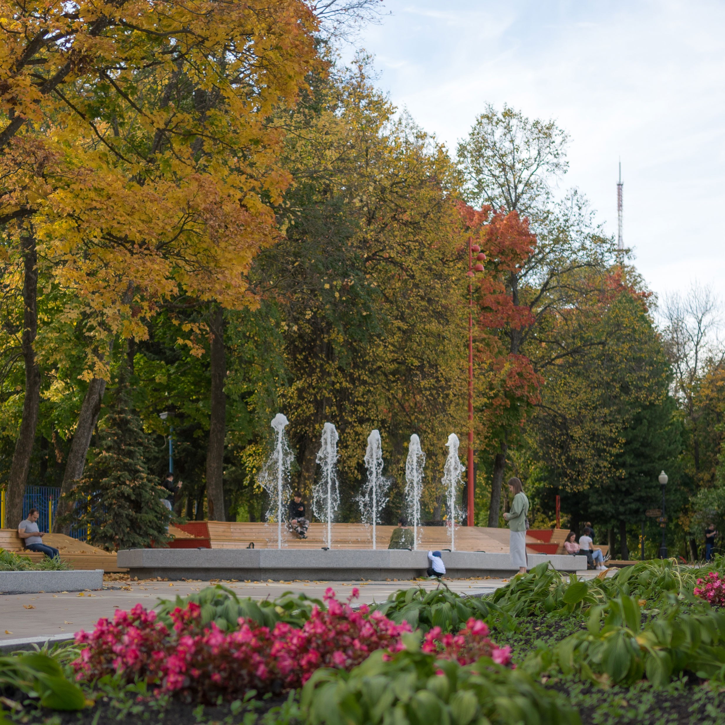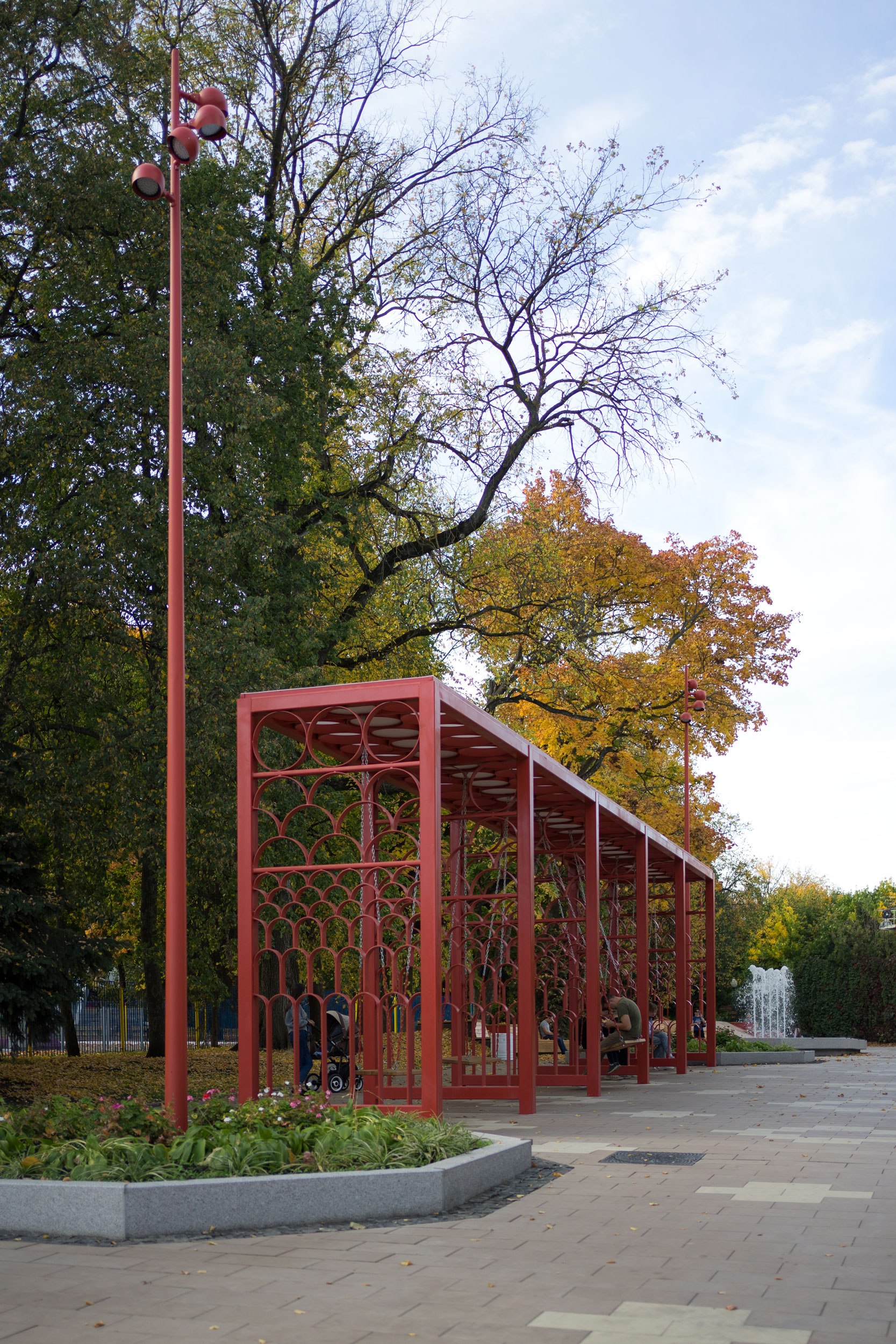 После реконструкции площадь стала самодостаточным местом отдыха, привлекающим новых посетителей парка. Забавно, что с наклонных элементов амфитеатра дети начали скатываться, как с горки.