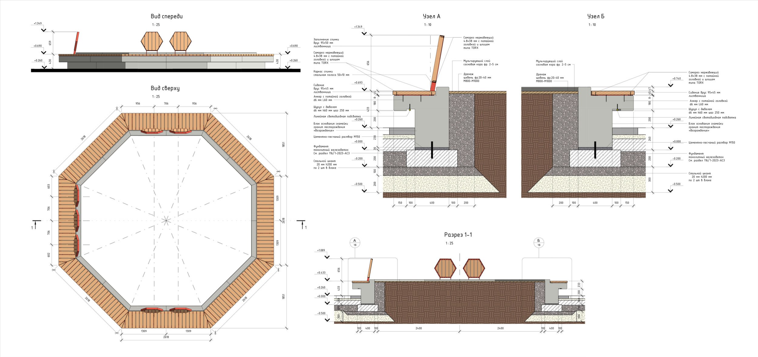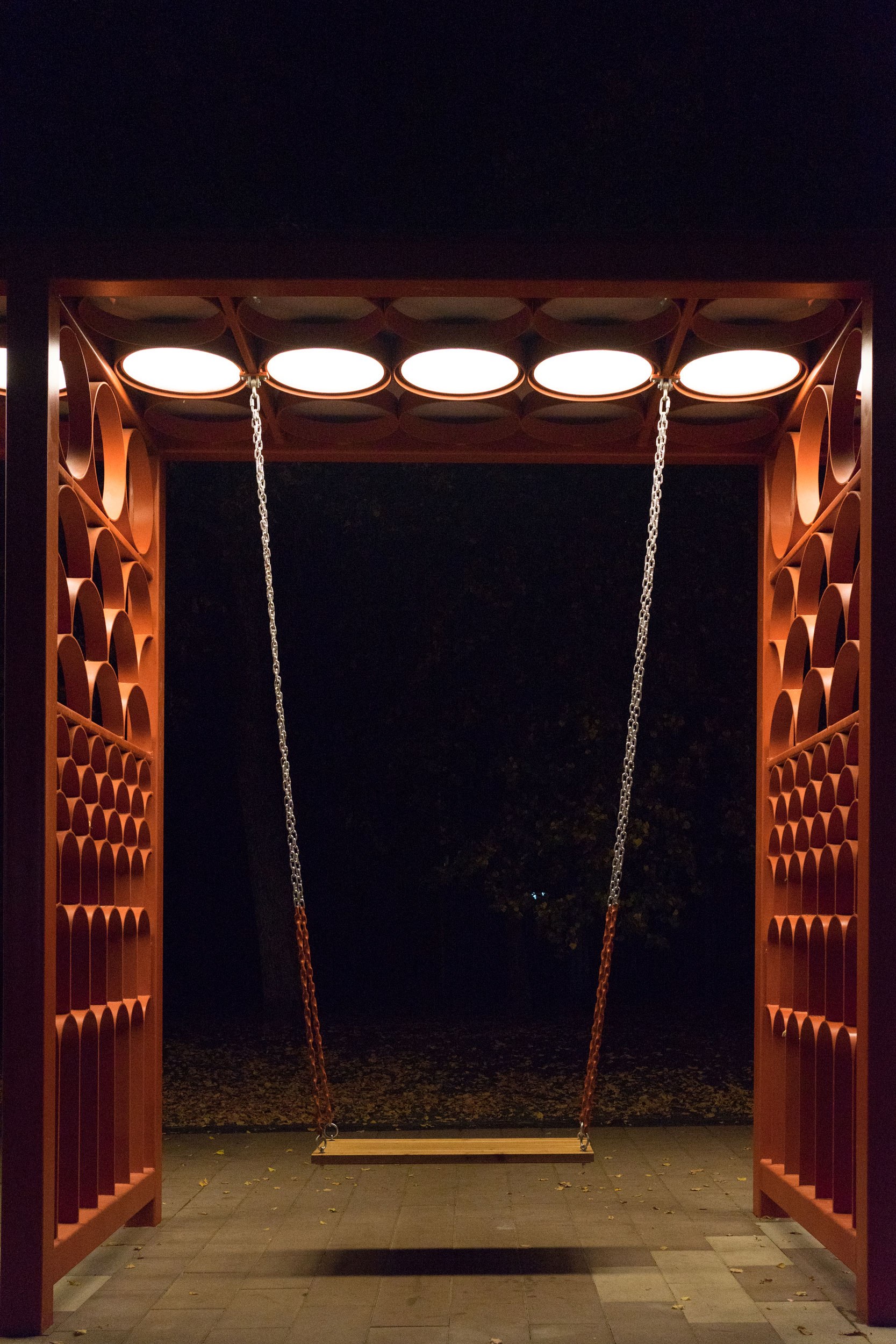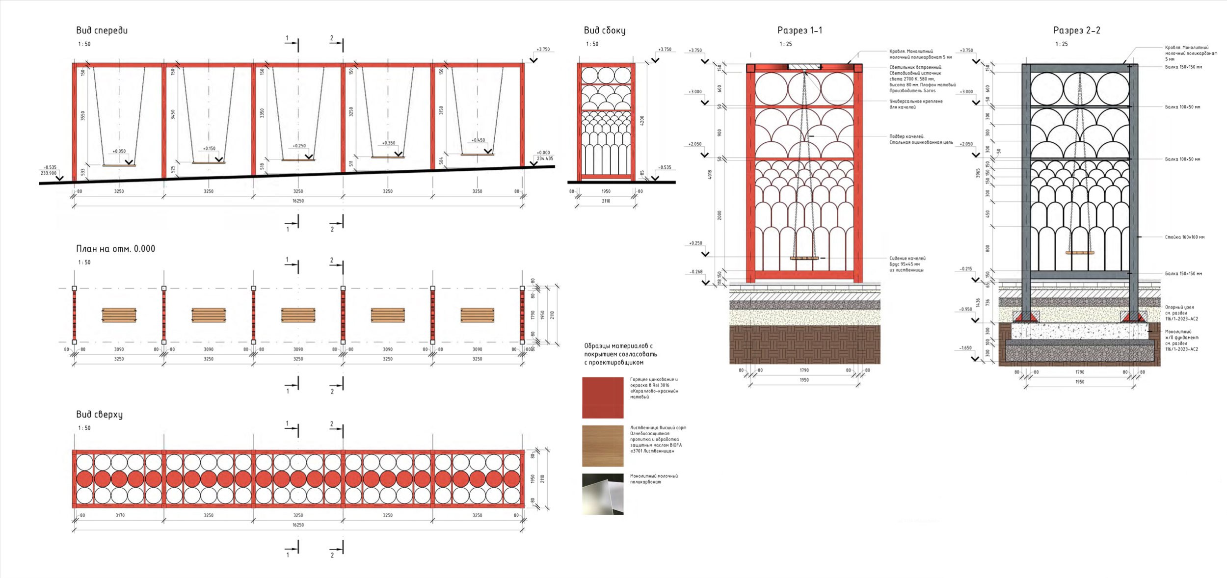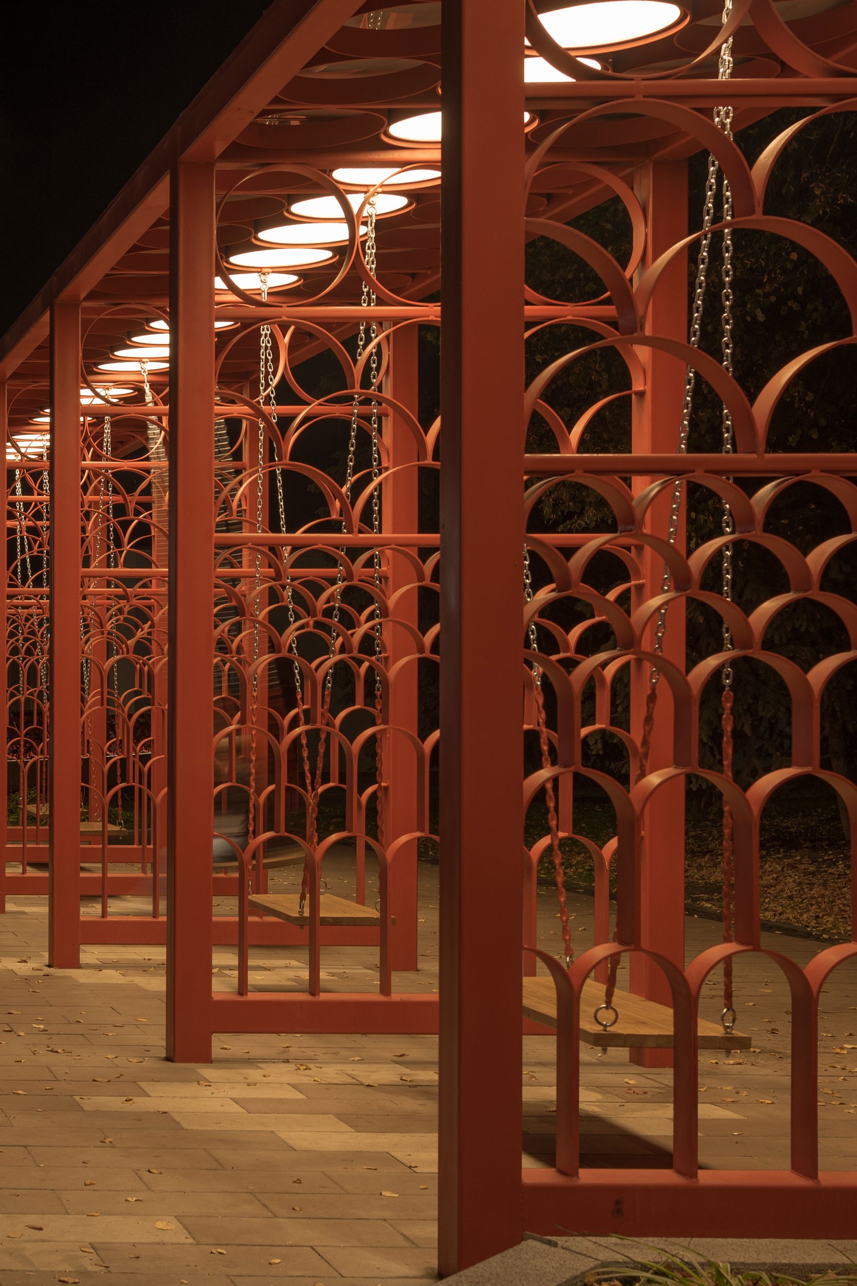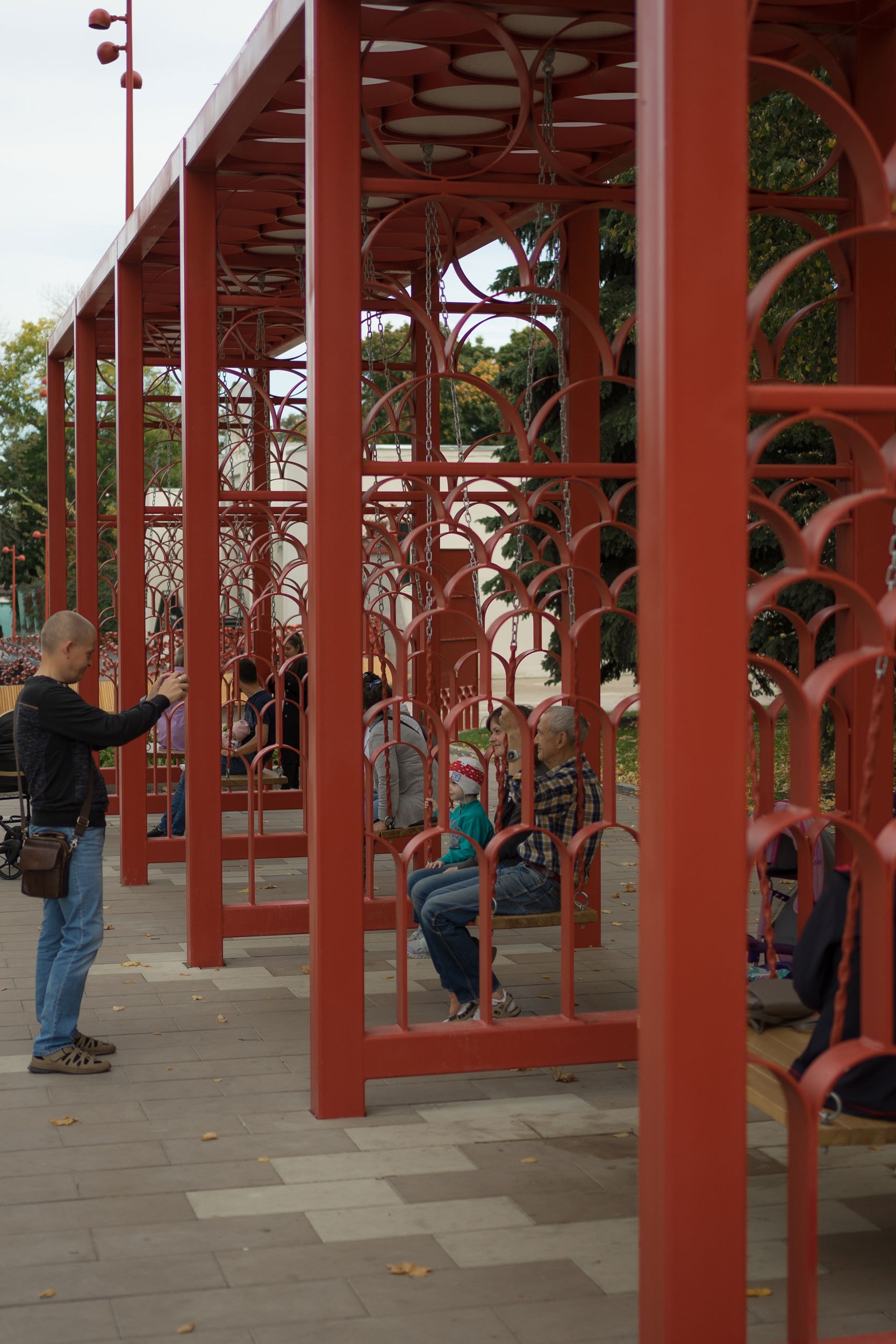 Удалось реализовать большое количество сложных, нетиповых МАФ (качели, входная группа, скамьи, амфитеатр, коммуникационные люки), которые придали индивидуальность центральному парку города.