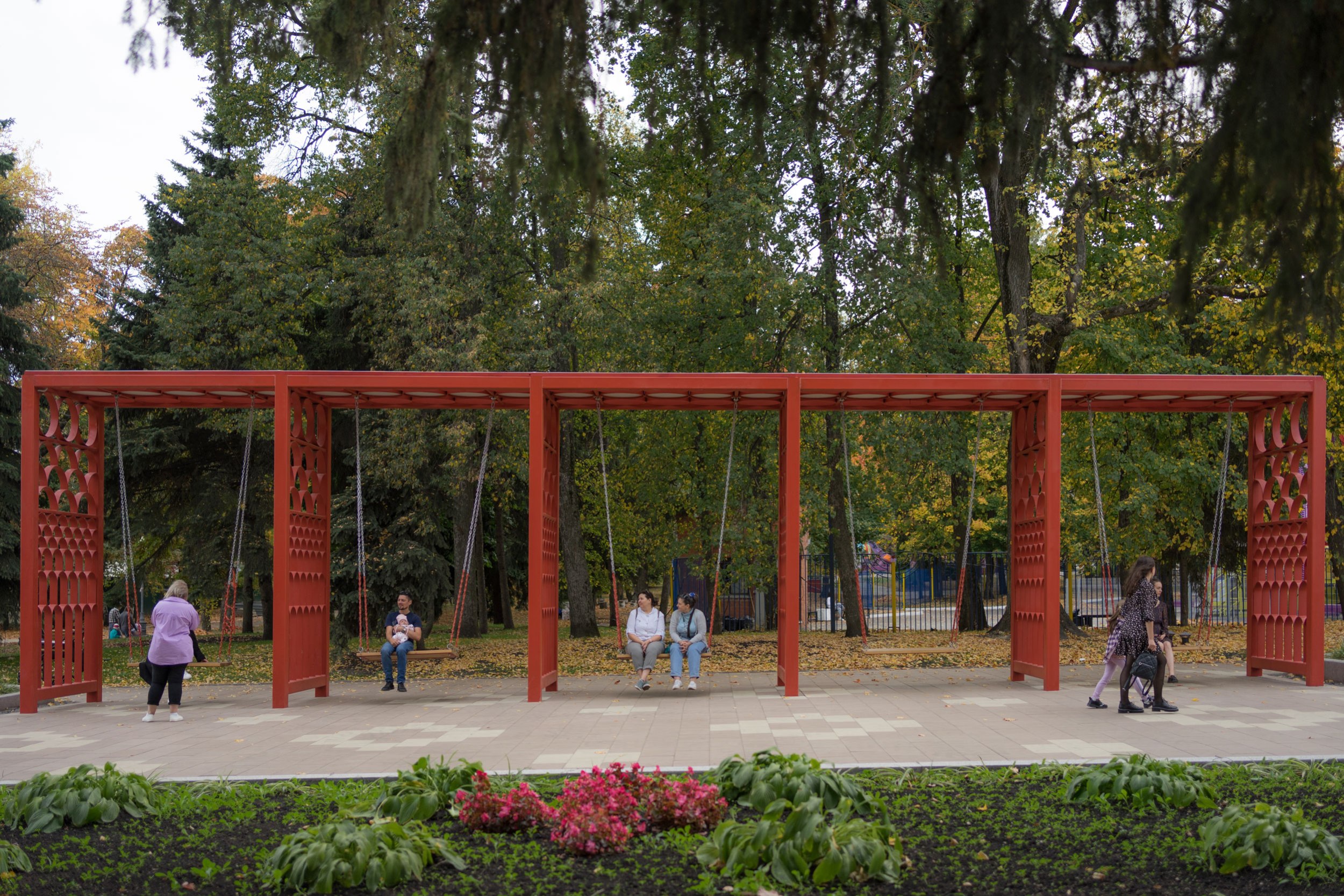 Несмотря на то, что парк исторический, в нем наблюдается большой перевес развлекательной функции: на площади до реконструкции все скамейки и трибуна были обращены лицом к аттракционам. Проект разворачивает горожан лицом к истории – вид на планетарий раскрывается с качелей и амфитеатра, он становится фоном для праздничных представлений.