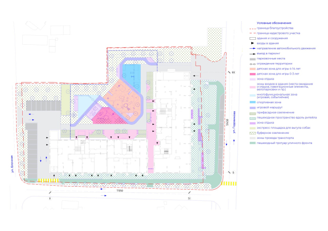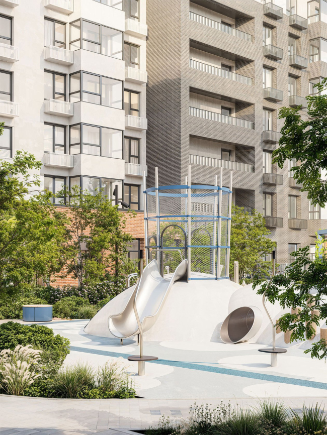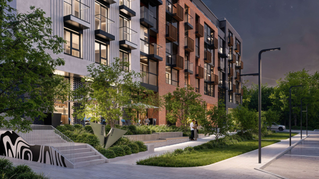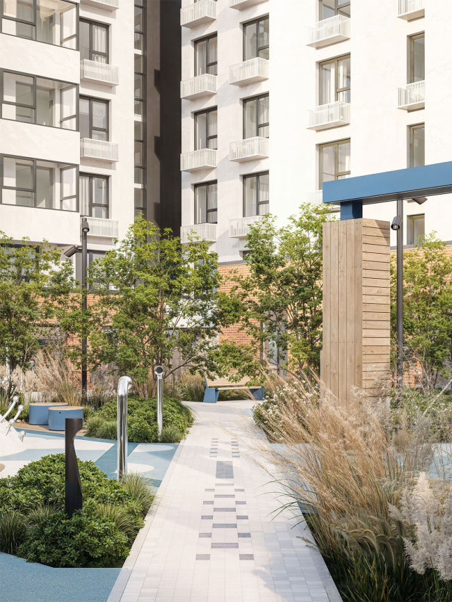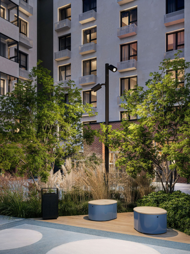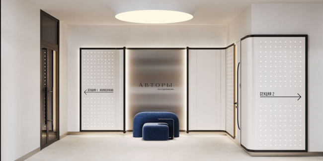 В рамках совместной работы с заказчиком, девелоперской компанией «Авторы», студия разработала комплексную концепцию благоустройства и дизайна интерьеров мест общего пользования жилого комплекса. В состав проекта вошли зона лобби, детская комната, две колясочных комнаты, зона парковки, а также придомовая территория площадью порядка 0,56 га. Основной задачей было создание современной и качественной среды, которая способствует взаимодействию жителей и воплощает идею добрососедства.