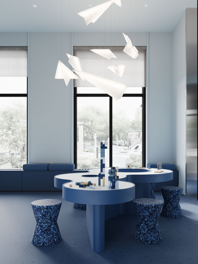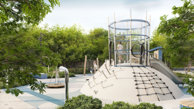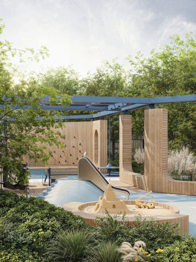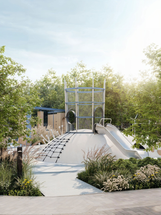 Особое внимание архитекторы уделили пространствам для семей с детьми. Было важно создать безопасную среду, где маленькие дети смогут наблюдать за играми старших и в то же время взаимодействовать с ними.