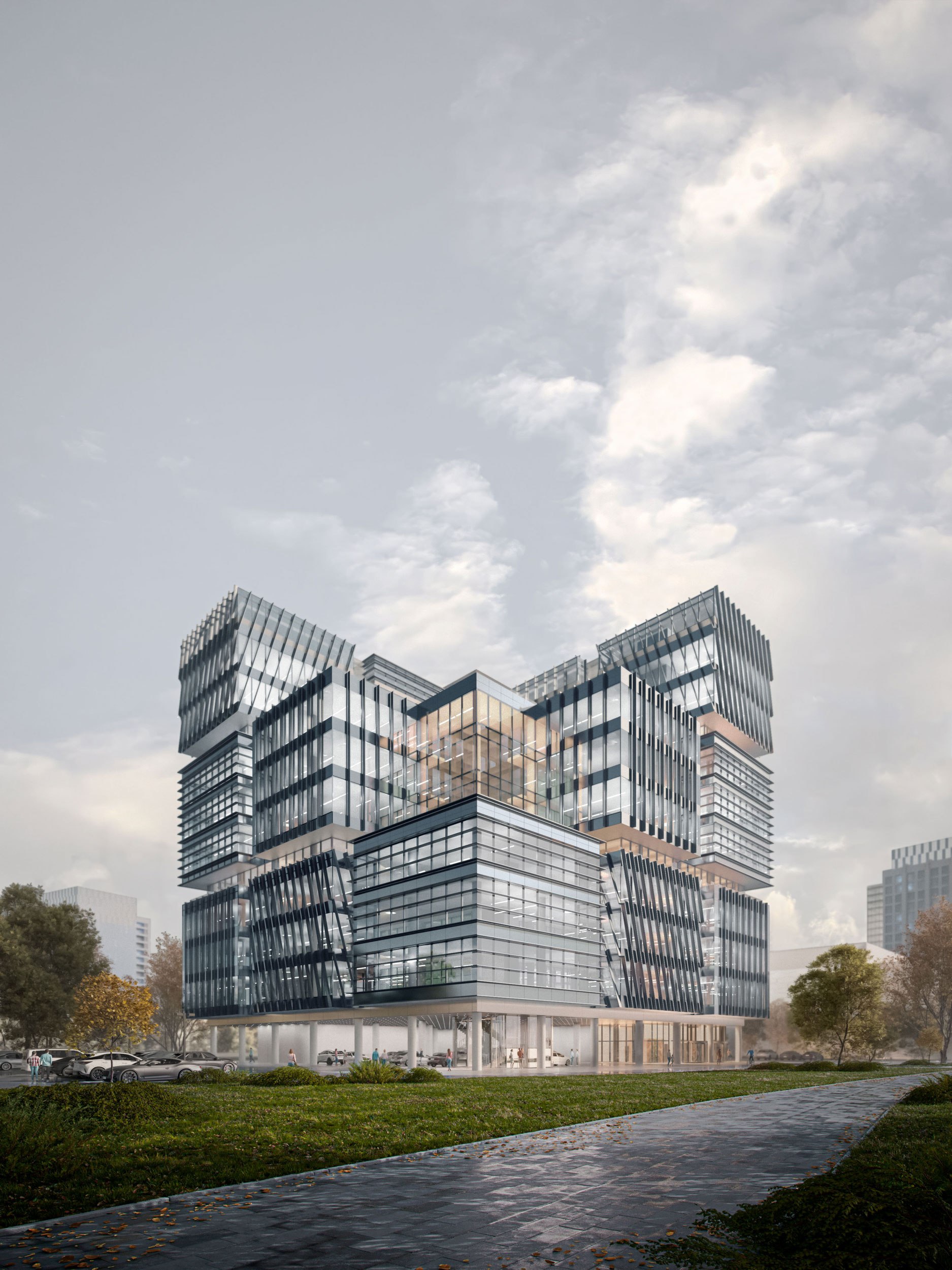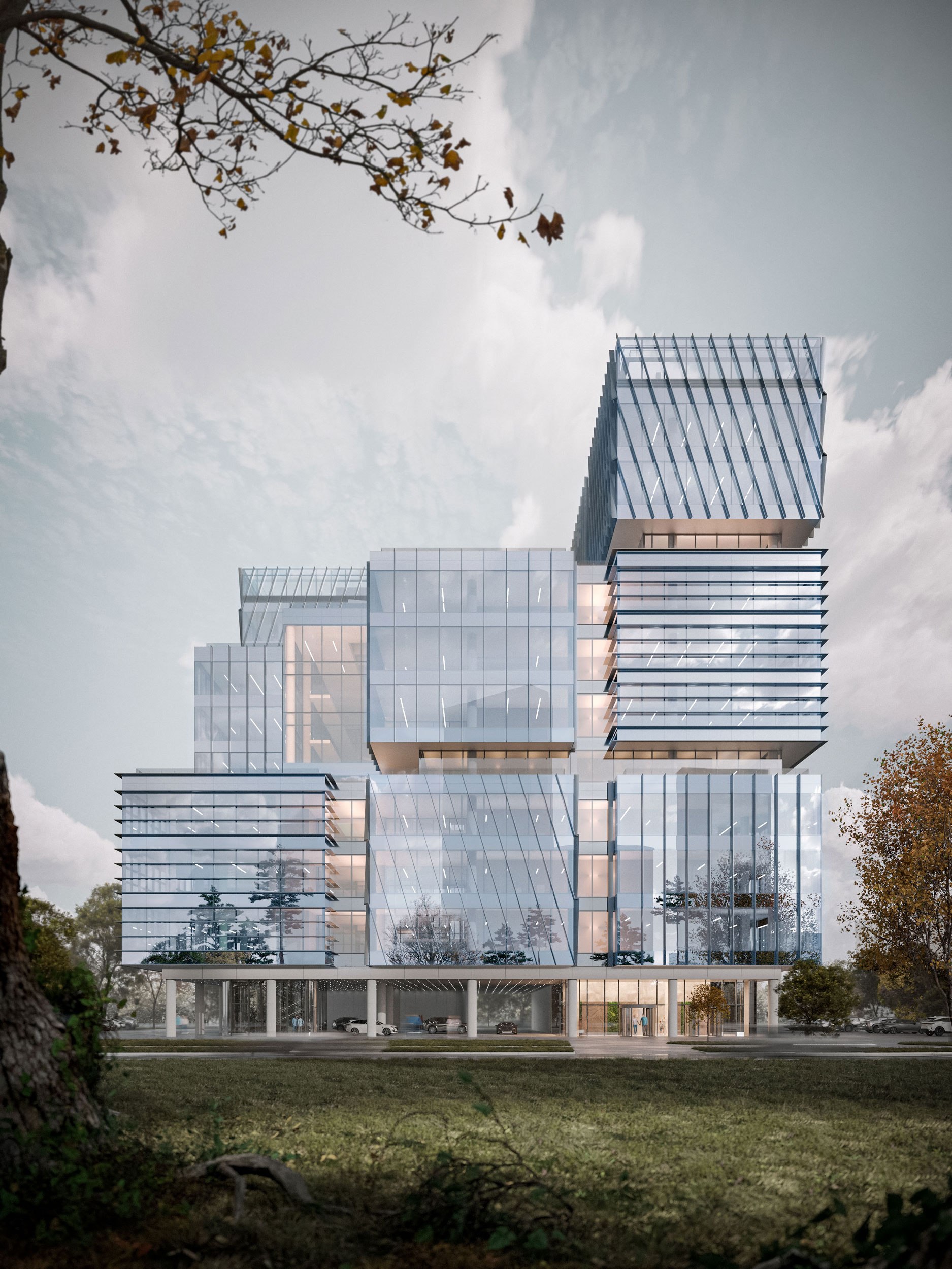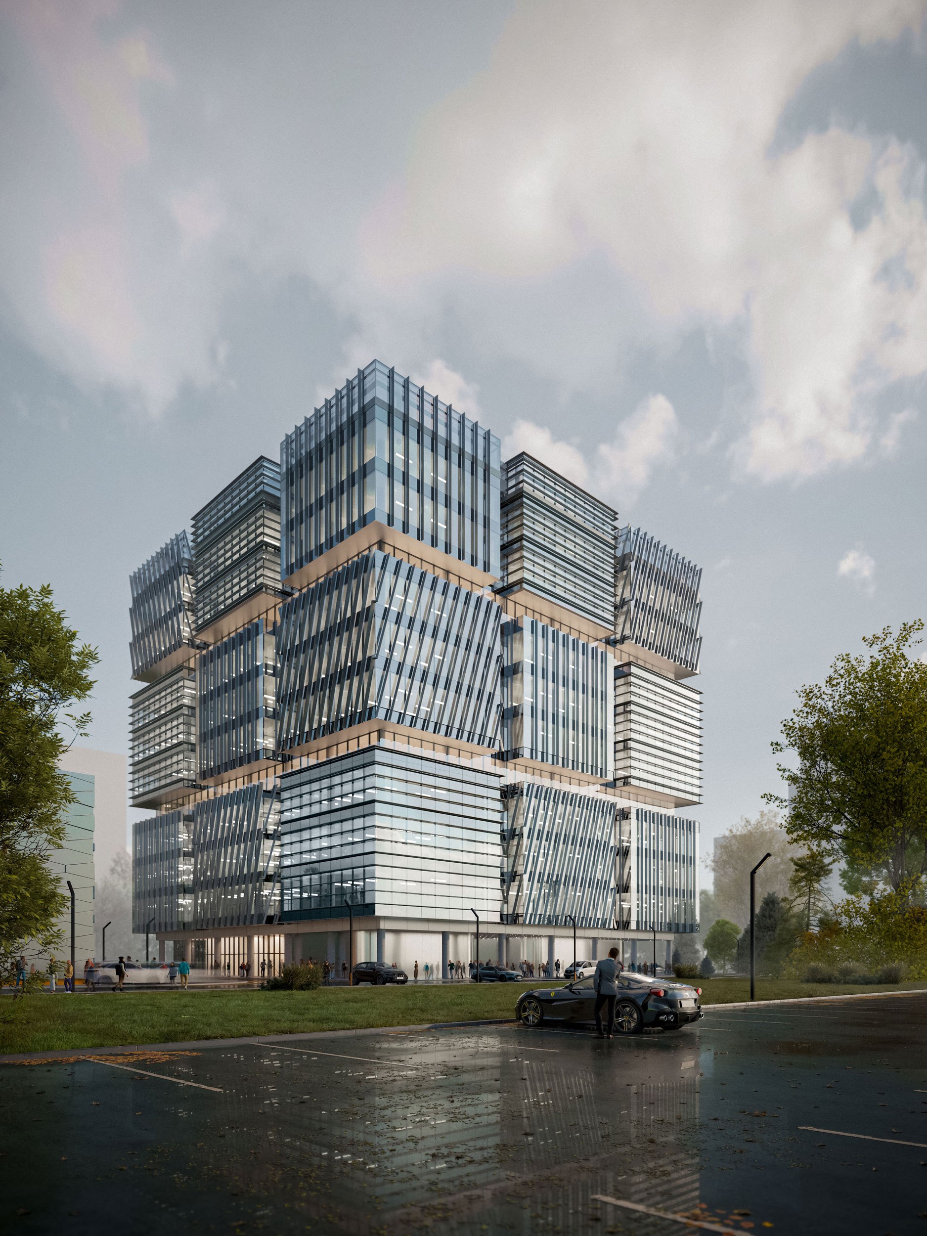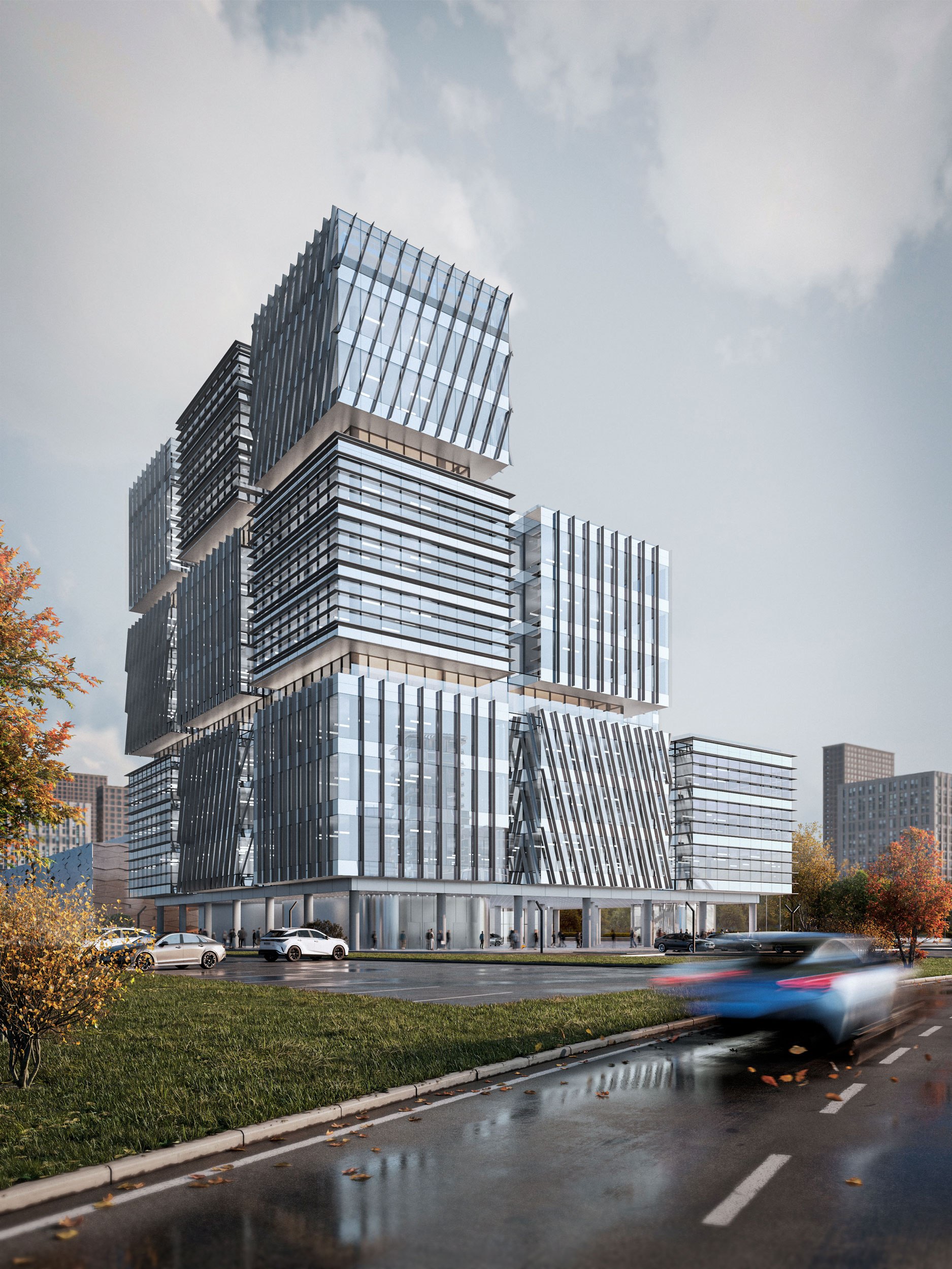 «Визуальный облик и объемно-пространственные решения комплекса являются архитектурной интерпретацией процесса накопления информации и блоков данных. Физически эти процессы выражены выступающими объемами кубической формы, которые и формируют основной объем здания», – сказал Сергей Кузнецов.