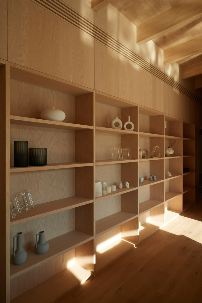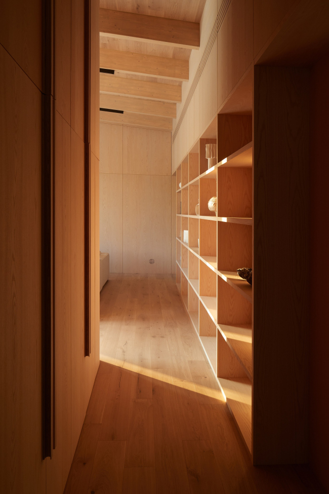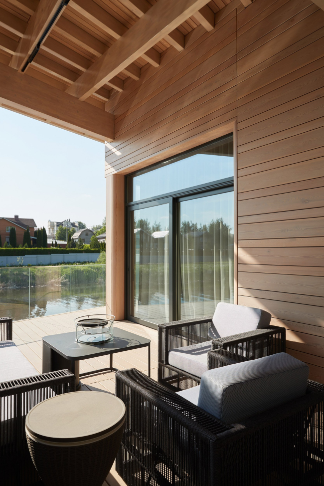 Участок 4 сотки, трапециевидной формы во много предопределил форму и посадку дома. Было решено делать деревянный светлый дом с некоторыми интересными деталями на фасаде. Так появилисьскругленные наличники на окнах из клееной лиственницы и пластика фасада. Интерьер также сделан из светлого дерева. Благодаря смене генподрядчика в процессе строительства удалось добиться высочайшего качества исполнения интерьеров и фасадов в точном соответствии с проектом.