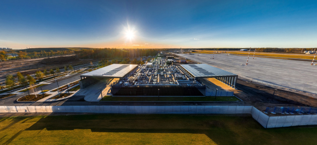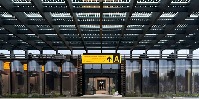 Суперграфика с разметкой и следы покрышек самолета становятся дополнительным визуальным впечатлением для пассажиров и пилотов. В момент приземления воздушное судно оставляет свой след на летном поле – как автограф, подтверждающий успешность полета. Само здание и инфраструктура аэропорта – продолжение взлетно-посадочной полосы. Таким образом, «след» приземляющихся самолетов проявляется во всех составляющих территории – как в эмоционально-художественном смысле, так и в технологическом аспекте.