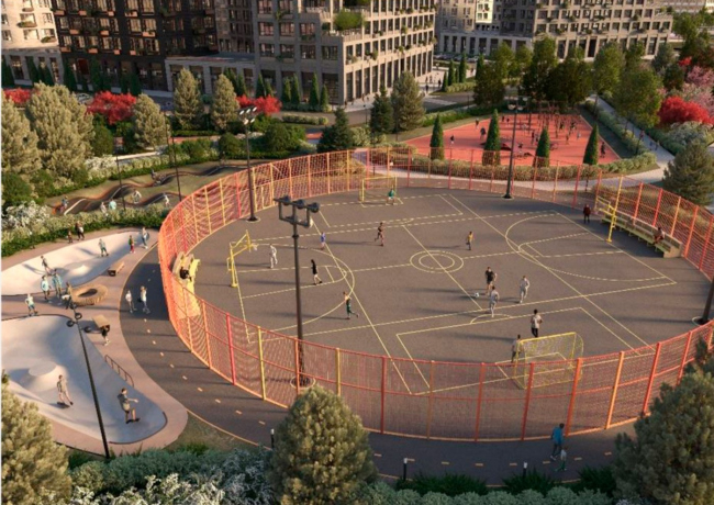 В загородном проекте МЫС девелопер создаст большой всесезонный парк площадью 17 га с яблоневым садом, прудом и набережной, прогулочными и велосипедными дорожками, лыжным маршрутом. Здесь будут воссозданы особенности ландшафтов, орнаментов и архитектуры регионов России – Юга, Севера, Дальнего Востока, Поволжья, Центра, Сибири, Урала, Прибалтики, Новой Земли. Каждый променад здесь превратится в своего рода путешествие. Автором благоустройства стал Александр Леонов, спроектировавший Имеретинскую набережную в Сочи.