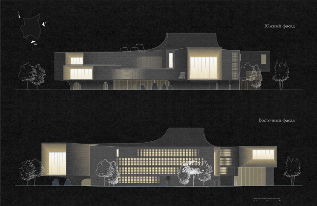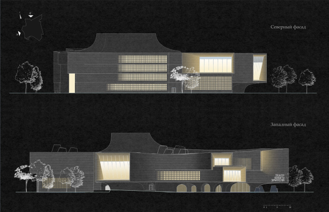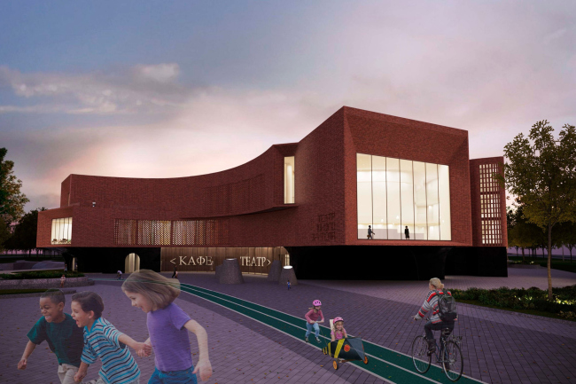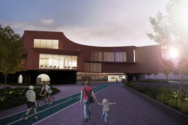 Создан уникальный образ здания. С одной стороны, в основу концепции заложена краснокирпичная архитектура исторической части города, интерпретированная в современную форму и исполнение. С другой – особенности формирования театральных зданий и ориентация на юного зрителя. В результате родился уникальный образ здания – доброе антропоморфное существо из пластичных выдавленных форм в кирпичном исполнении, помещенное на консоли. Выдавленные формы имеют завершение в виде витражей, ориентированных на интересные видовые точки, созданные благоустройством и городской средой.