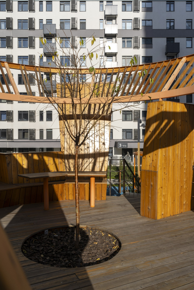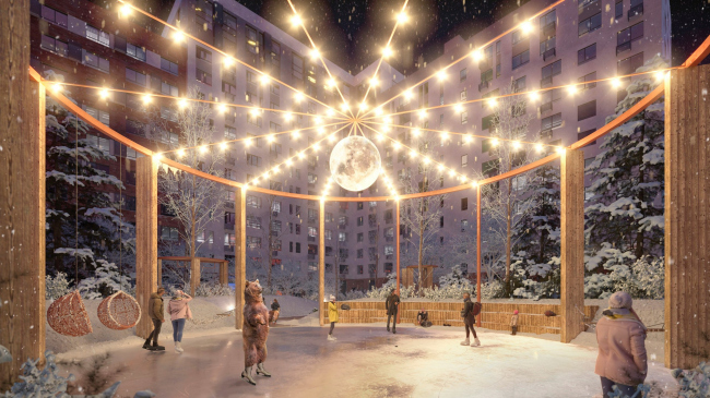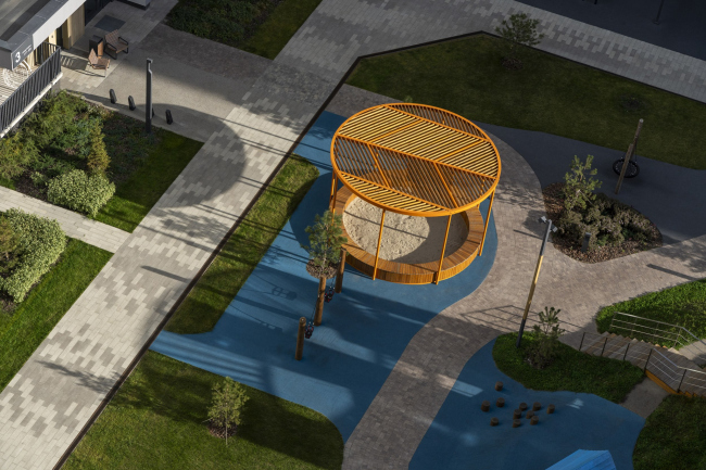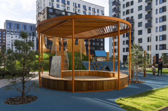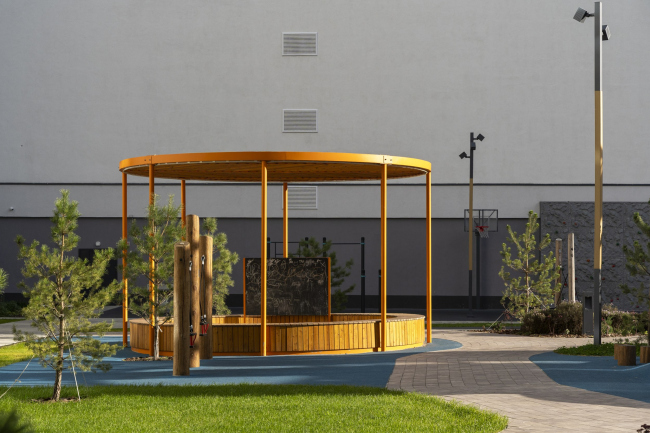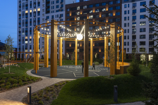Описание предоставлено архитекторами Идеей для благоустройства двора «Южная тайга» послужил Тунгусский метеорит, ударивший Сибирь практически в самое сердце в 1908 году. В центре двора, над многофункциональной детской спортивной зоной, завис светящ... читать дальше