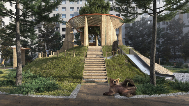 В жилом комплексе «Сердце Сибири» мы разработали концепции нескольких территорий и хотим рассказать о тех, которые реализованы. Это двор «Южная тайга», двор «Северная тайга» и бульвар «Тропа Сибири».