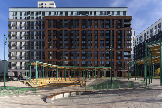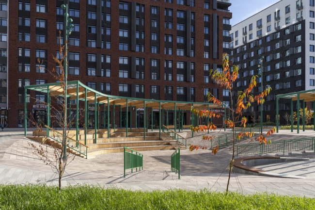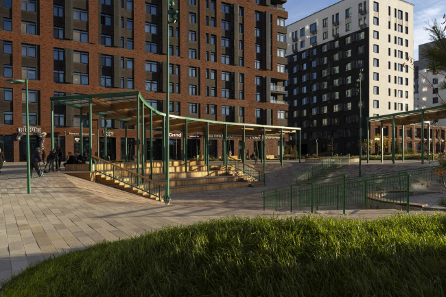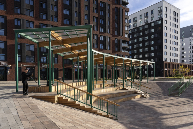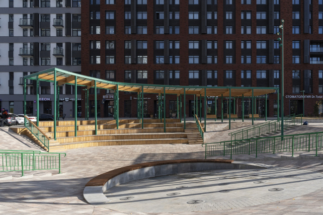 В пространстве «степи» расположена площадь, амфитеатр под навесом с видом на фонтан, зимой поверх которого может устраиваться сцена.