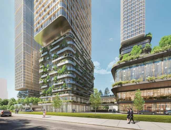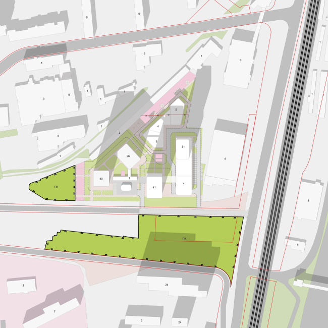 Вдоль южной границы участка простирается локальный парк, как бы приглашающий резидентов в новый мир природного урбанизма по изгибающейся линии исторического следа реки Серебрянка.